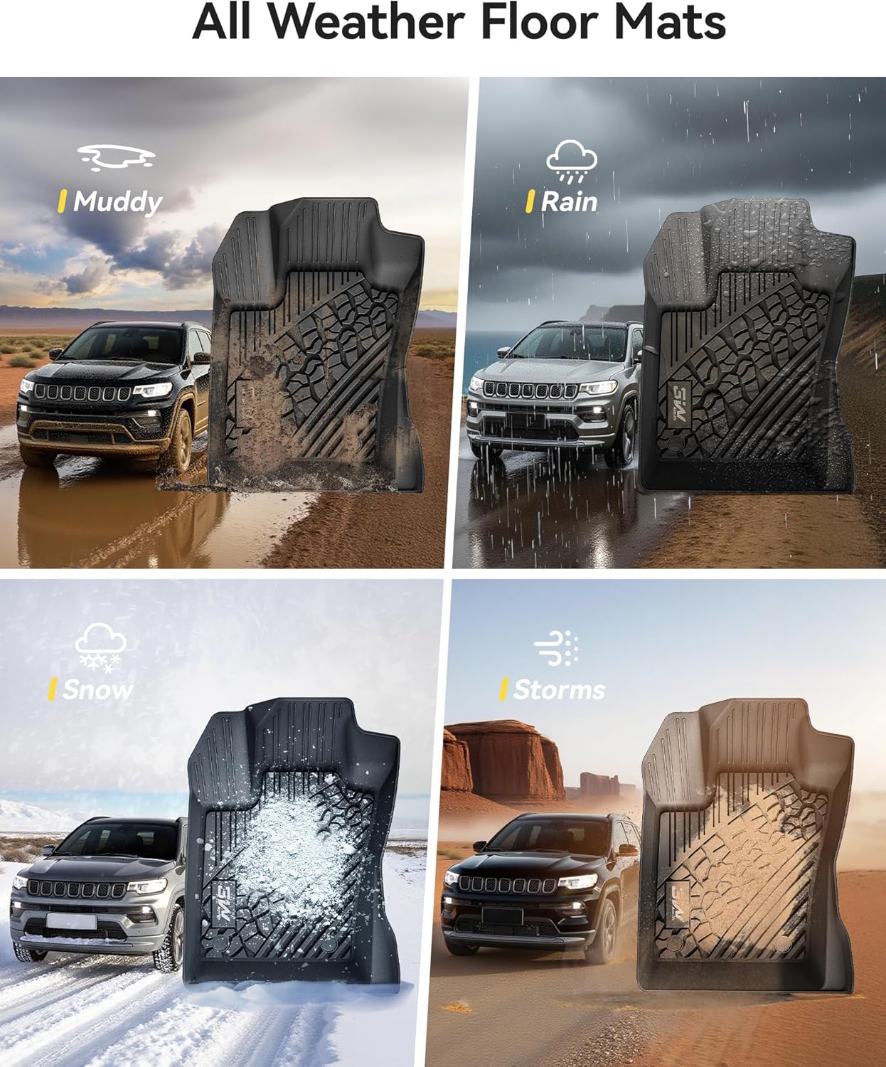 - PERFECT FIT: Perfect design for maximum coverage and protection with TPE (thermoplastic elastomer) material which ensures your Jeep Compass more strength, resilience, durability and elasticity, this floor liners are compatible with Compass 2017-2025.