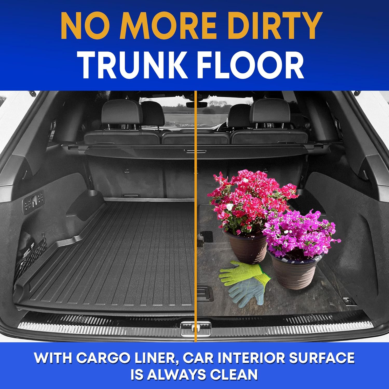 - Easy-To-Wash & Stain Resistant - The cargo mat liner for SUV is a perfect option if you are tired of the mess in your trunk after every trip. Forget the spending hours cleaning the trunk, our mat is easily washable, just rinse it with running water. The surface is stain-resistant, which makes it looks new even after years of use!