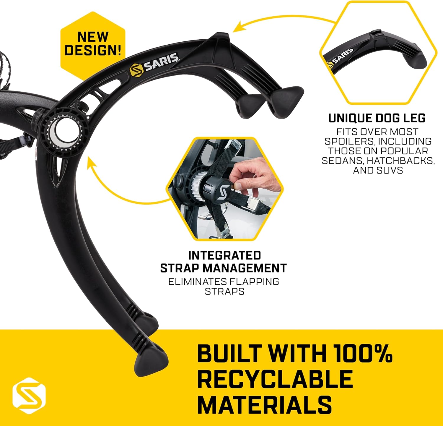 Saris Bones EX 2-Bike Trunk Rack Bicycle Carrier, Durable, Rust-Free, Anti-Sway Straps, Made in USA, Arc-Based Design, 100% Recyclable Materials