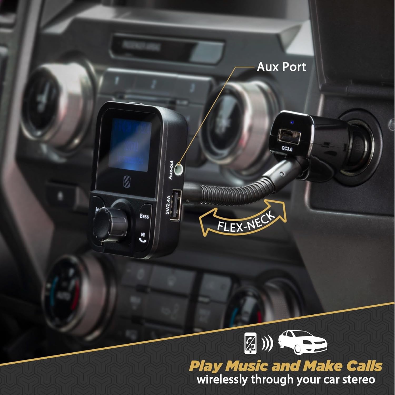Scosche SBTFM1-XCES0 Bluetooth 5.0 FM Transmitter w/ Dual USB Charger Ports, LCD Screen, Adjustable Neck & Aux Port, Wireless Radio Bluetooth Adapter, Hands-Free Car Kit for Phone Calls & Music Player