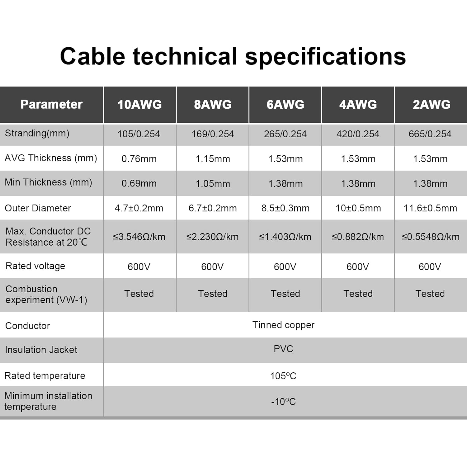 - Wide temperature range: -76°F to 221°F (-60°C to 105°C), rated voltage is 600V, resistant to acid, alkali, oil and strong oxidation. Chemical, flame, aging, weather resistant and electrically insulating.
