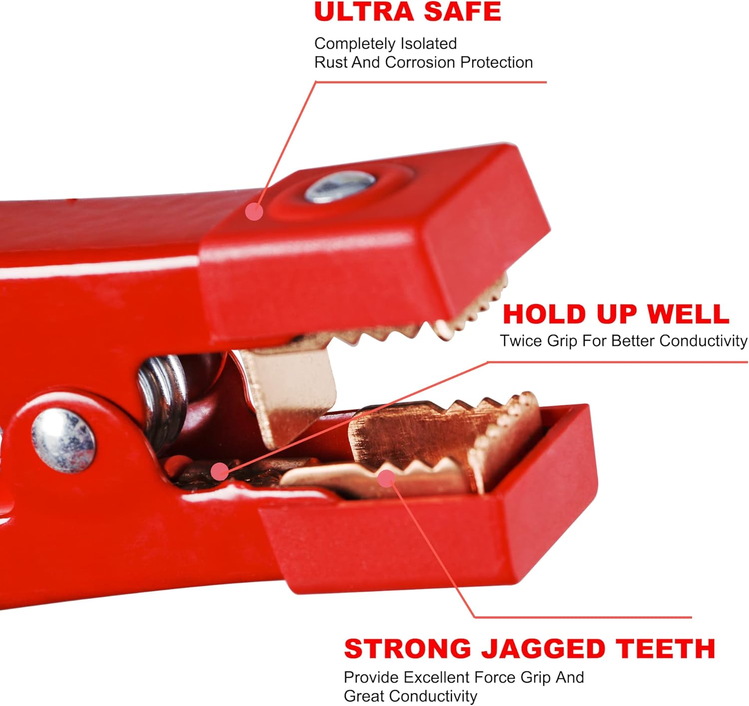 - Unique Design Strong Clamps - Industrial polypropylene made cover protects jaws from impacts (Unique Design), Also patented design clamps covered with non-conducting rubber, which make AWELTEC jumper cables more safe and durable for repeatedly use.
