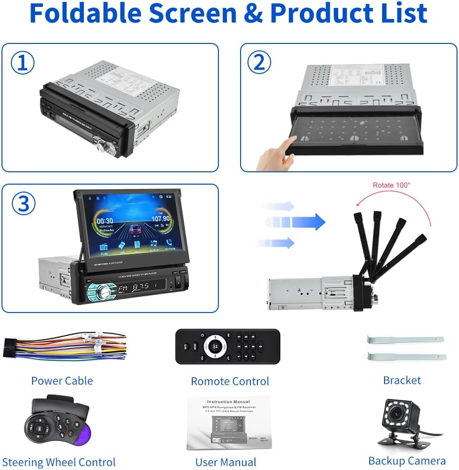 - ćBuilt-in Apple Carplay & Android AutoćThe filp up car player supports built-in wired carplay and Android Auto. Just connect with your smartphone that make this single din apple carplay possible for you to access map navigation, phone contacts, email, notification, music. Voice Control, Let you talk to Siri or Voice Assistant to control everything