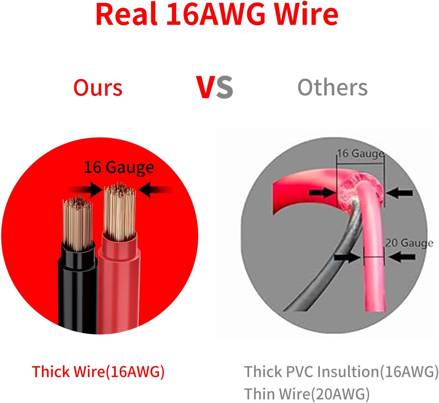 - 26FT, 8m cigarette lighter extension cord with one male plug and one female socket. Wire Gauge: 16 AWG