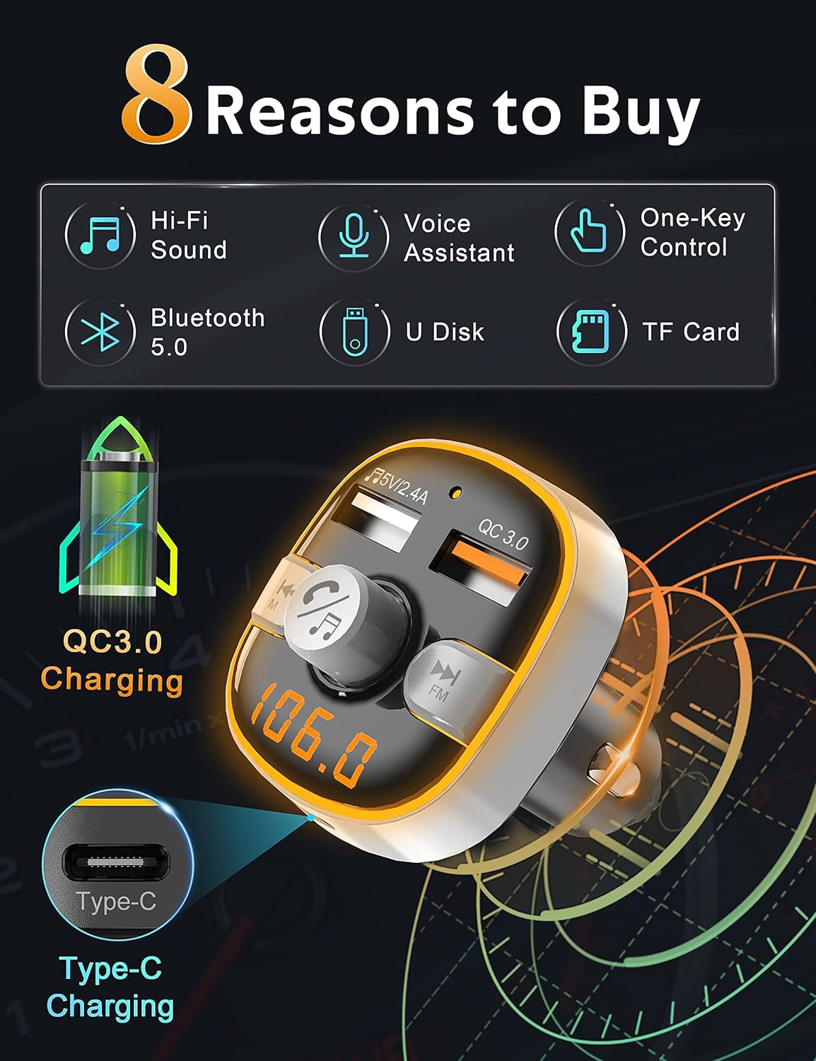 - 【Practical Assistant】 ⚡Dual USB ports with one quick charge 3.0 port which is up to 4X faster than standard chargers, save time, reduce power dissipation. ⚡One USB-C PD charging port give you one more charging choice and save your cables. Anther smart 2.4A charge port can be used for charging or U disk connecting. 📞Built-in microphone, supports Siri/Google voice commands. Easy to answer or end a call with one key. No need to pick up and hold your phone. Make your driving process safer.