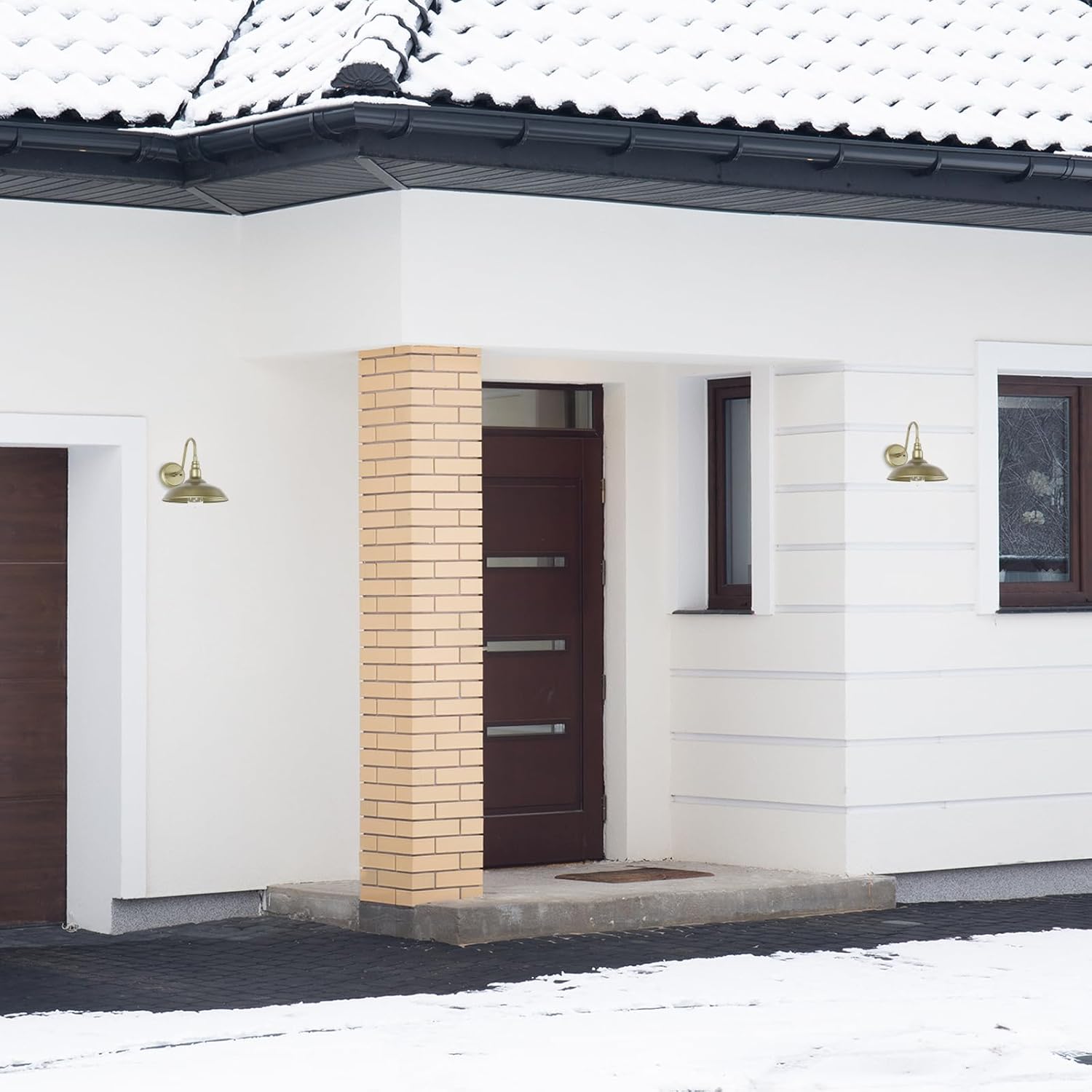 - Industrial Brass Barn Door Wall Light Fixture for Farmhouse, Garage: With modern brass finish, plus classic gooseneck arm and curved top cap, this outdoor wall sconce creates a pleasing look and a simplistic element to any exterior house space