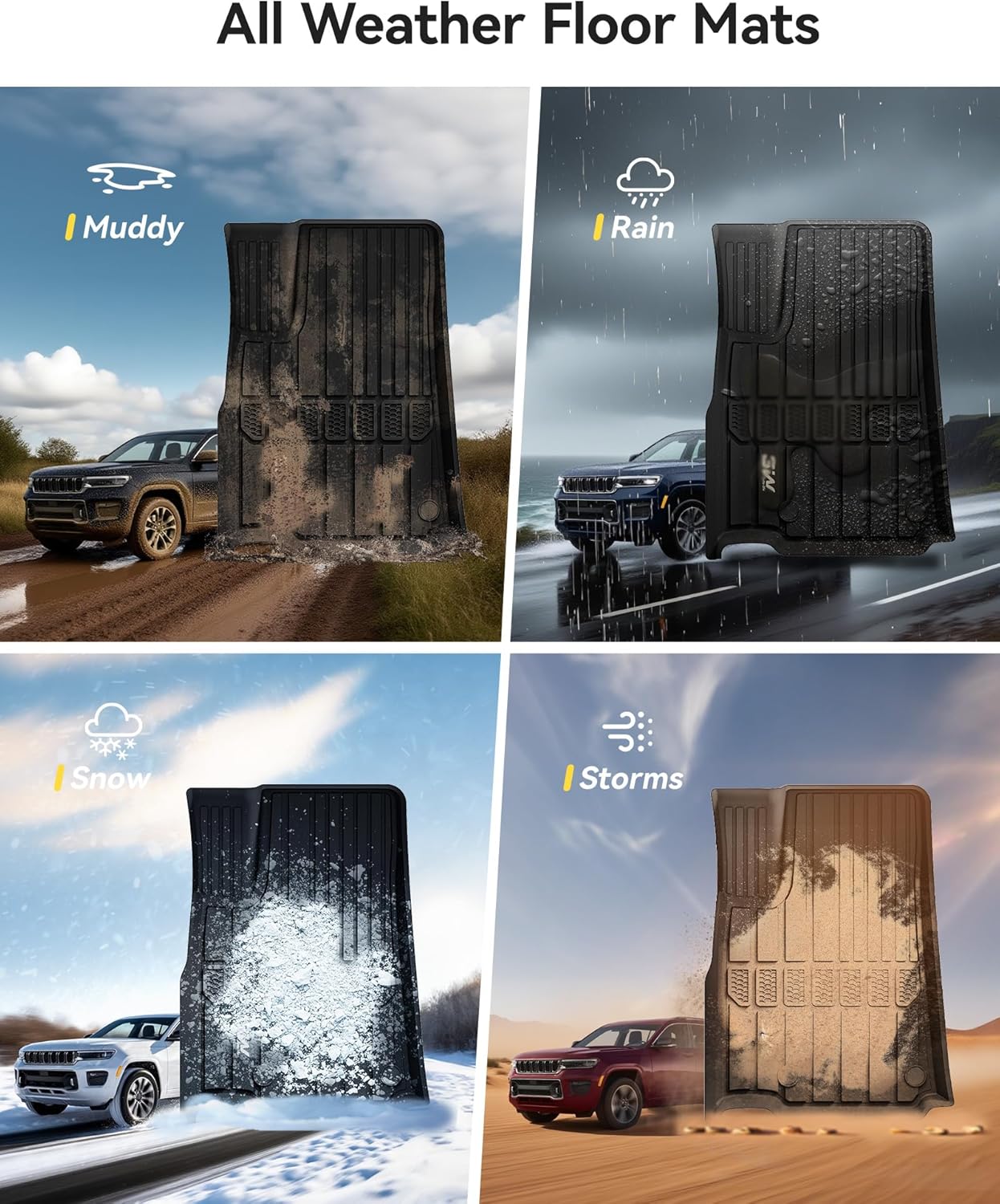 - PERFECT JEEP GRAND CHEROKEE L FLOOR MATS: Crafted with precision using 3D scanning technology and thermoplastic elastomer (TPE) material, perfect design for maximum coverage and protection with TPE material which ensures for jeep grand cherokee L 2021-2024 2025 6 seat (not fit for 7 seat)without center console more strength, resilience, durability and elasticity.