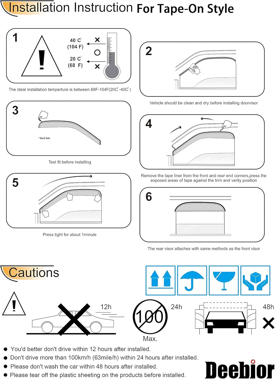 - ITEM-OFFERED: 4pcs window visors (Installation instruction is included),Please Remove The Protective Film Before Installation!