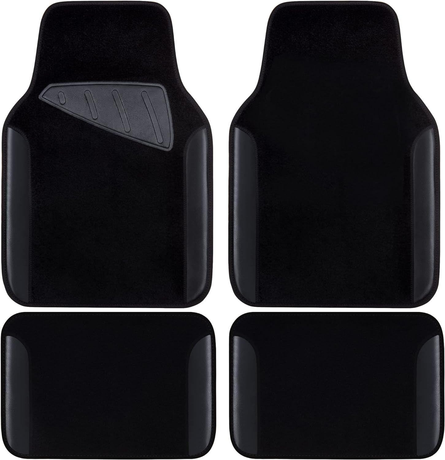 CAR PASS Waterproof Universal Fit Car Floor Mats, Faux Leather Car Carpet Mats, Black Car Mats with Anti-Slip Nibbs Backing & Driver Heel Pad Fit for SUV,Vans,sedans, Trucks,Set of 4pcs(All Black)