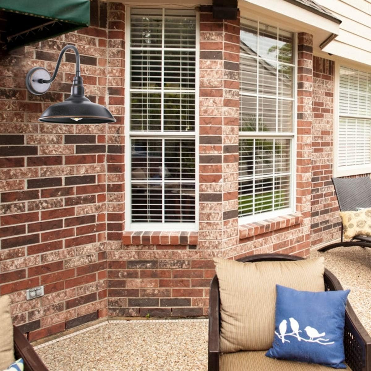 - Vintage Wall Sconce Brings A Farmhouse Style: Featured with its classic gooseneck arm, retro bronze finish, and a popular 10 inch dome cover size, this barn wall lights brings a simplistc element to both exterior and interior place. The open shade bottom makes this gooseneck light cascades the light down amazingly, meets the illumination needs for your cabin, doorway, garden, porch, yard, garden, front and back porch, and also commercial place.