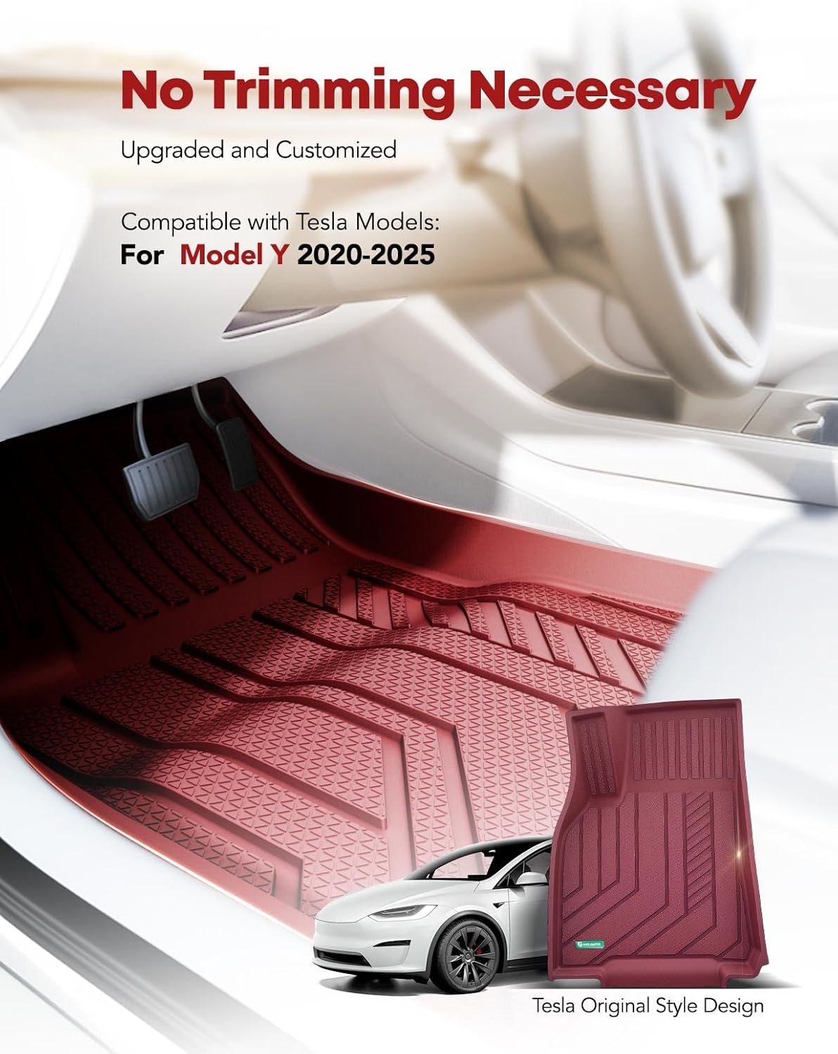 - Custom Fit To Your Vehicle: Compatible with Tesla Model Y 2020 2021 2022 2023 2024 2025 (5-Seat; Not for Juniper); YHTAUTOs floor mats fit precisely with the original car, the red design has a strong visual impact, making the interior of your vehicle more stylish and personalized, can enjoy the comfortable driving experience