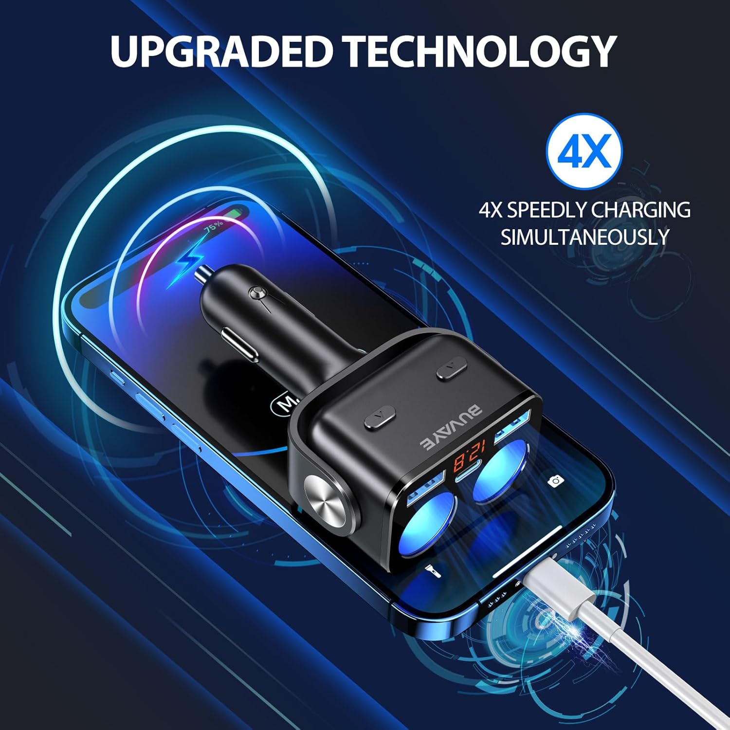 - 【Higher Output 】Dual cigarette lighter adapter with independent switches provide a total power of up to 155W, enough for simultaneous use of various watt automotive electronics, like Dash Cam, Radar Detector, GPS, Car Refrigerator, Heated Seat Cushion, Vacuum Cleaner and Aroma Diffuser.