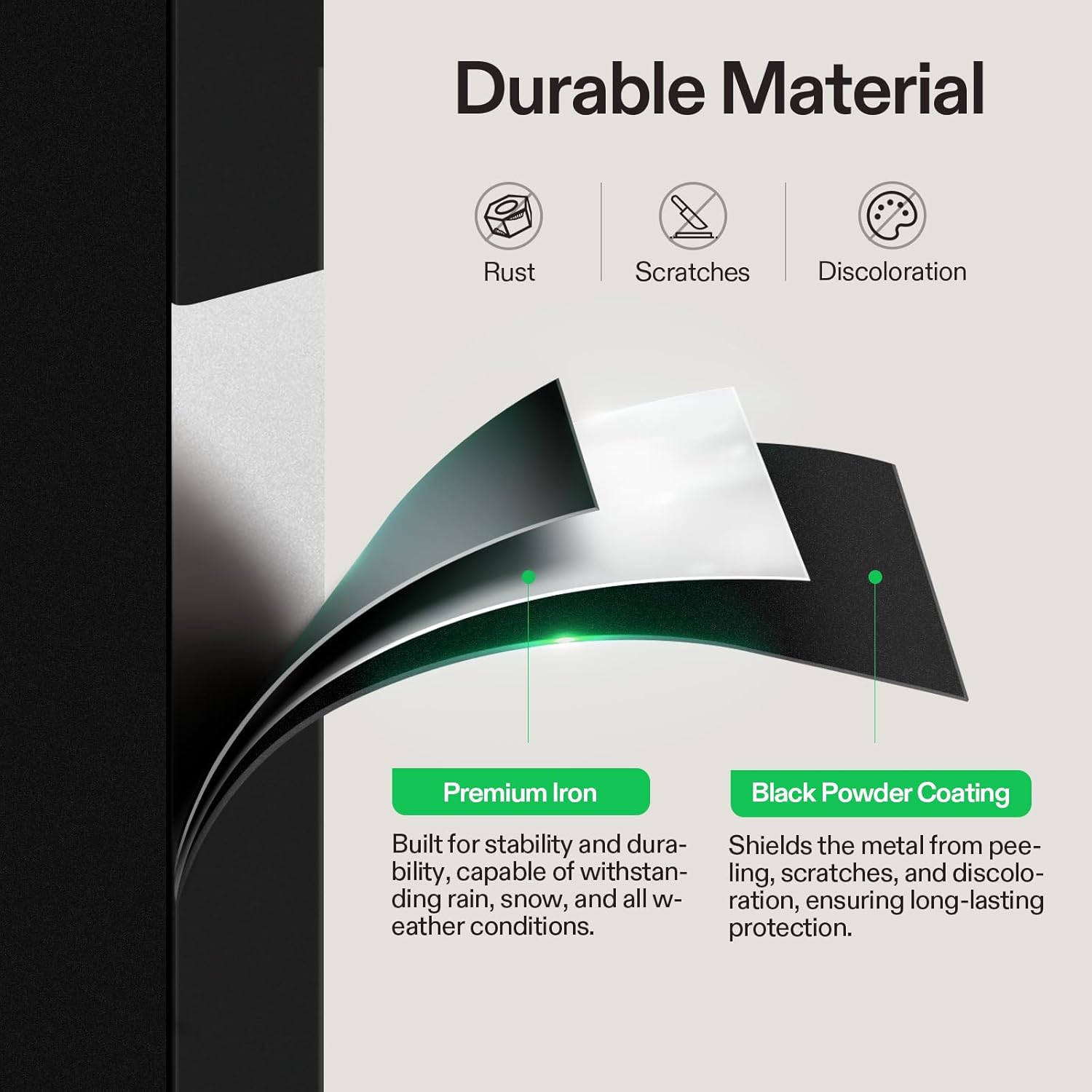 - Sturdy & Durable Material: Made of high-quality iron for stability and durability and is able to withstand rain, snow, and outdoor weather thanks to its black powder coating, which protects the metal and reduces chance of peeling, scratches, and discoloration