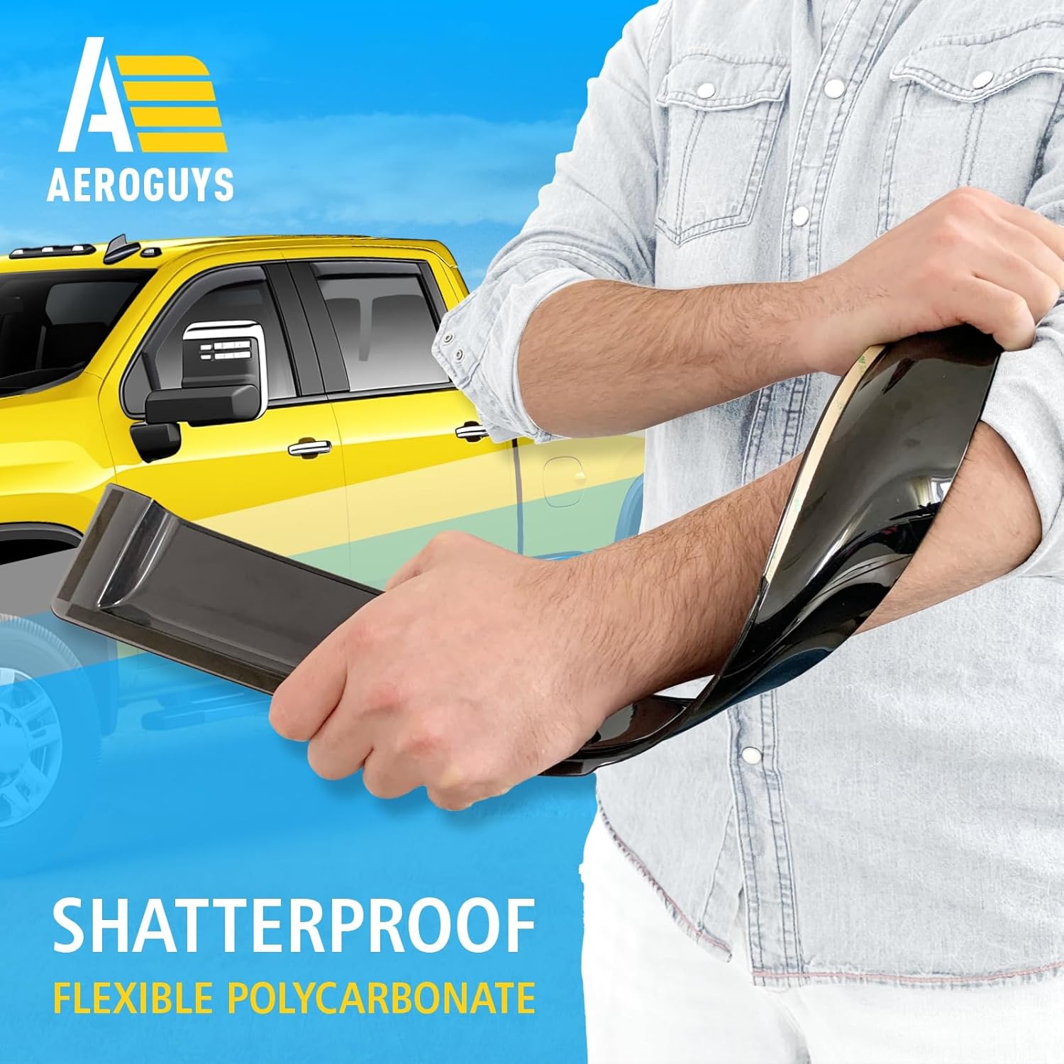 - Incredibly Durable AEROGUYS Auto Window Deflectors β They are made with strong and tough polycarbonate which is clear and scratch-resistant. They also provide UV protection making your ride more comfortable under all weather conditions.