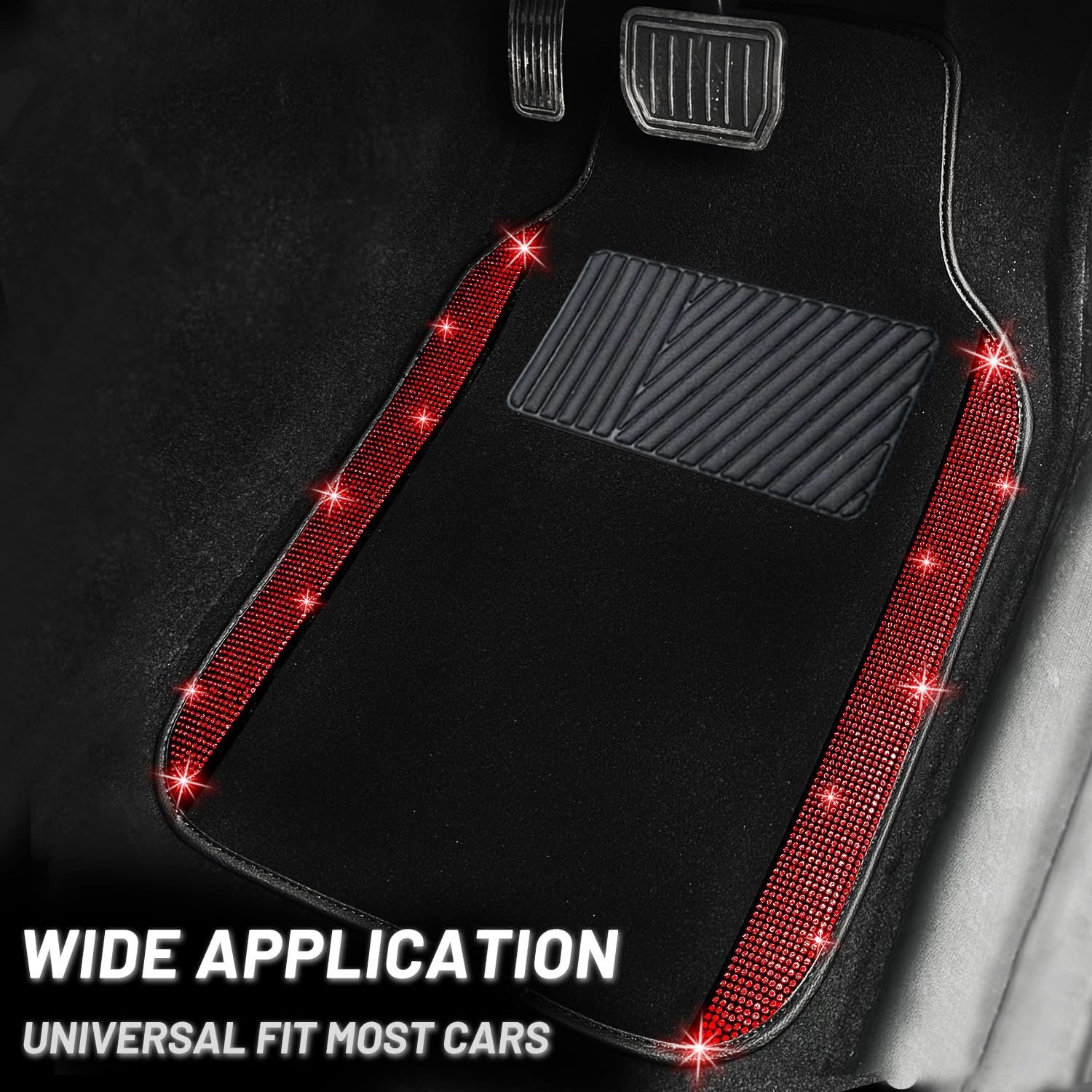 NBTEPEM Red Bling Car Floor Mats Full Set, Universal Fit Most Cars,SUV, Trucks, 4 pcs Sparkle Glitter Diamond Carpet for Women Girls with Anti-Slip Pad (Red Diamond)