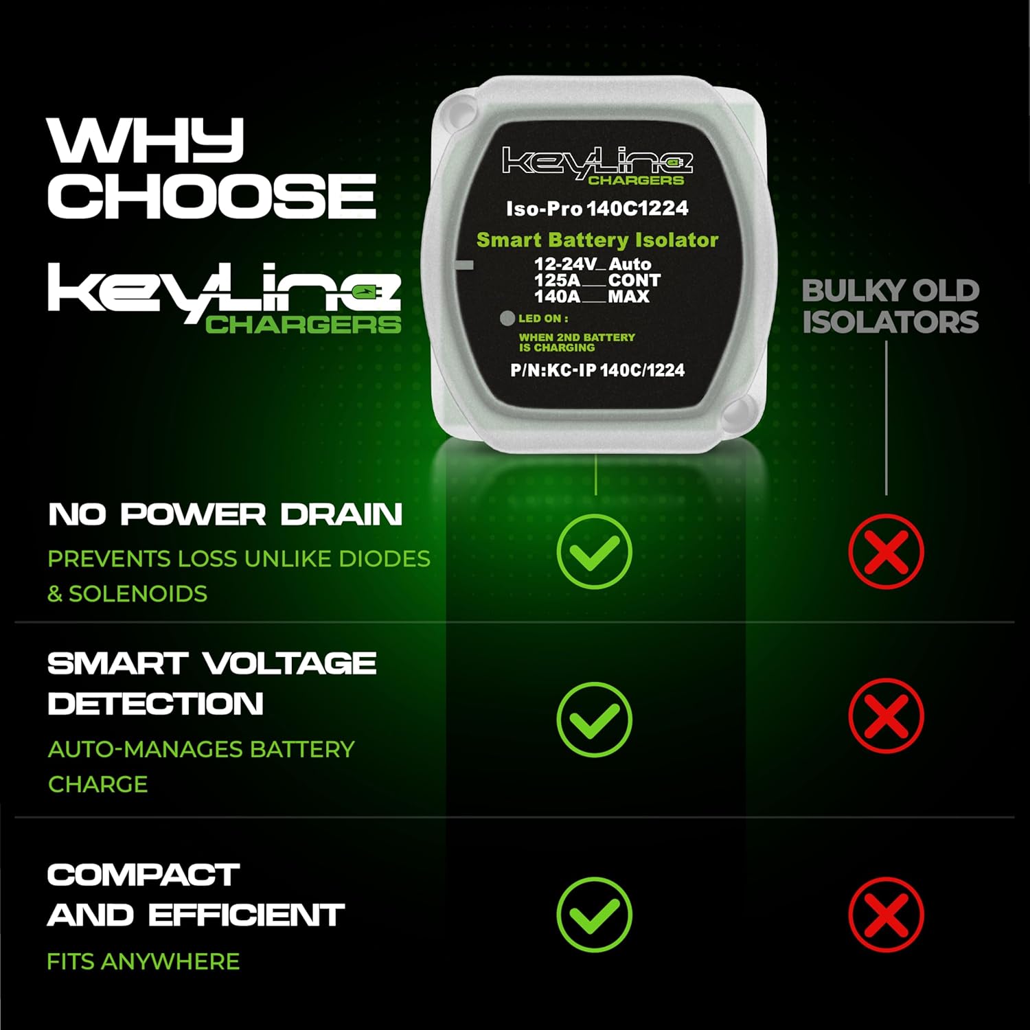 - Trusted Performance with Warranty & Money-Back Guarantee – Every dual battery kit by KeyLine Chargers is backed by a 12-month industry-leading warranty. If you’re not 100% satisfied with your purchase, take advantage of our 30-day money-back guarantee—no questions asked! Drive with confidence knowing you have a premium battery isolator 12V kit keeping your power system running at full capacity.