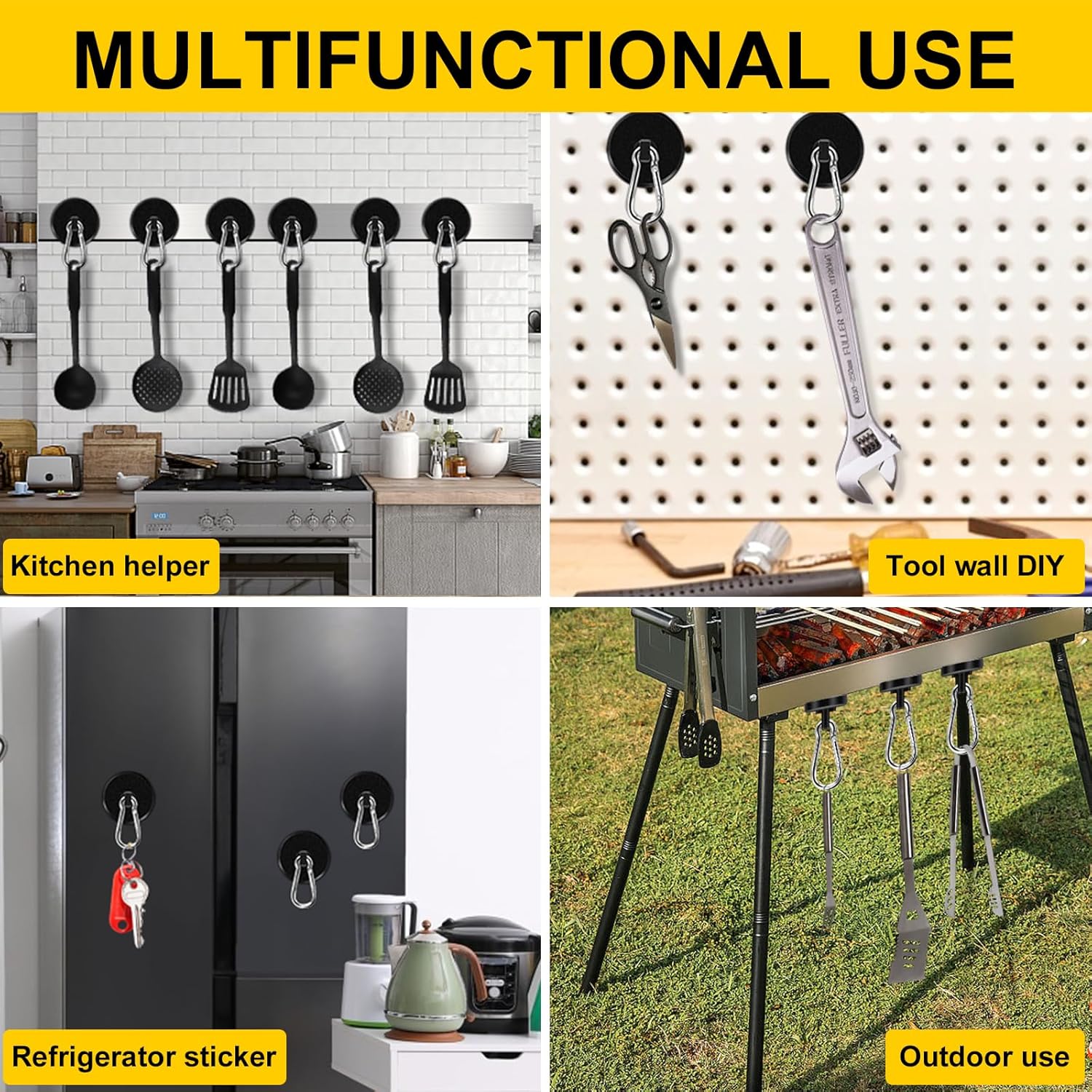 - WIDELY USED - Heavy duty magnetic hook is a great storage solution for your spaces, suitable for indoor and outdoor uses, such as warehouse,kitchen, tool room, garage, grill, locker, refrigerator, cruise cabin and any place with magnetic metal surface