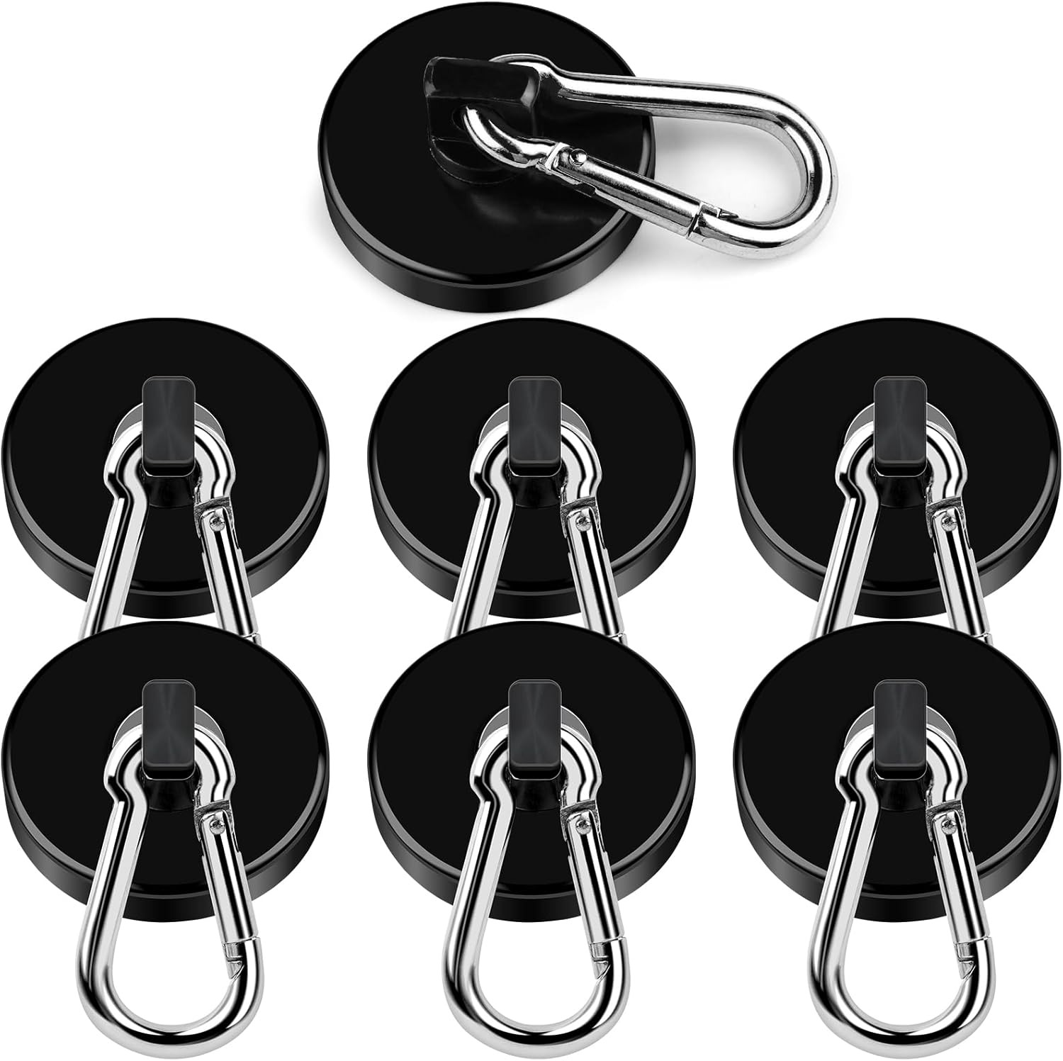 DIYMAG Black Magnetic Hooks, 110LBS Strong Heavy Duty Neodymium Magnet Hooks with Swivel Carabiner Hook, Great for Your Refrigerator and Other Magnetic Surfaces, Pack of 7