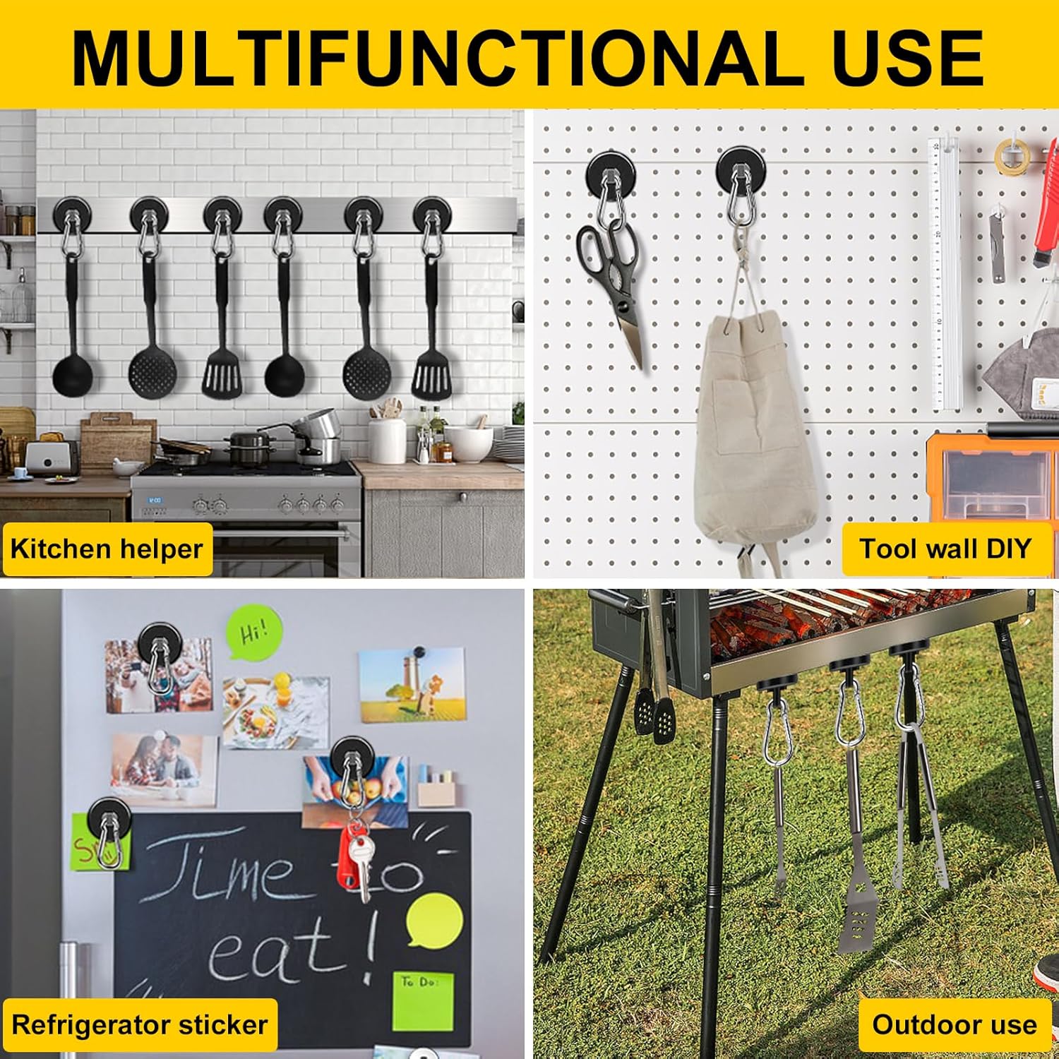 - WIDELY USED - Heavy duty magnetic hook is a great storage solution for your spaces, suitable for indoor and outdoor uses, such as warehouse,kitchen, tool room, garage, grill, locker, refrigerator, cruise cabin and any place with magnetic metal surface