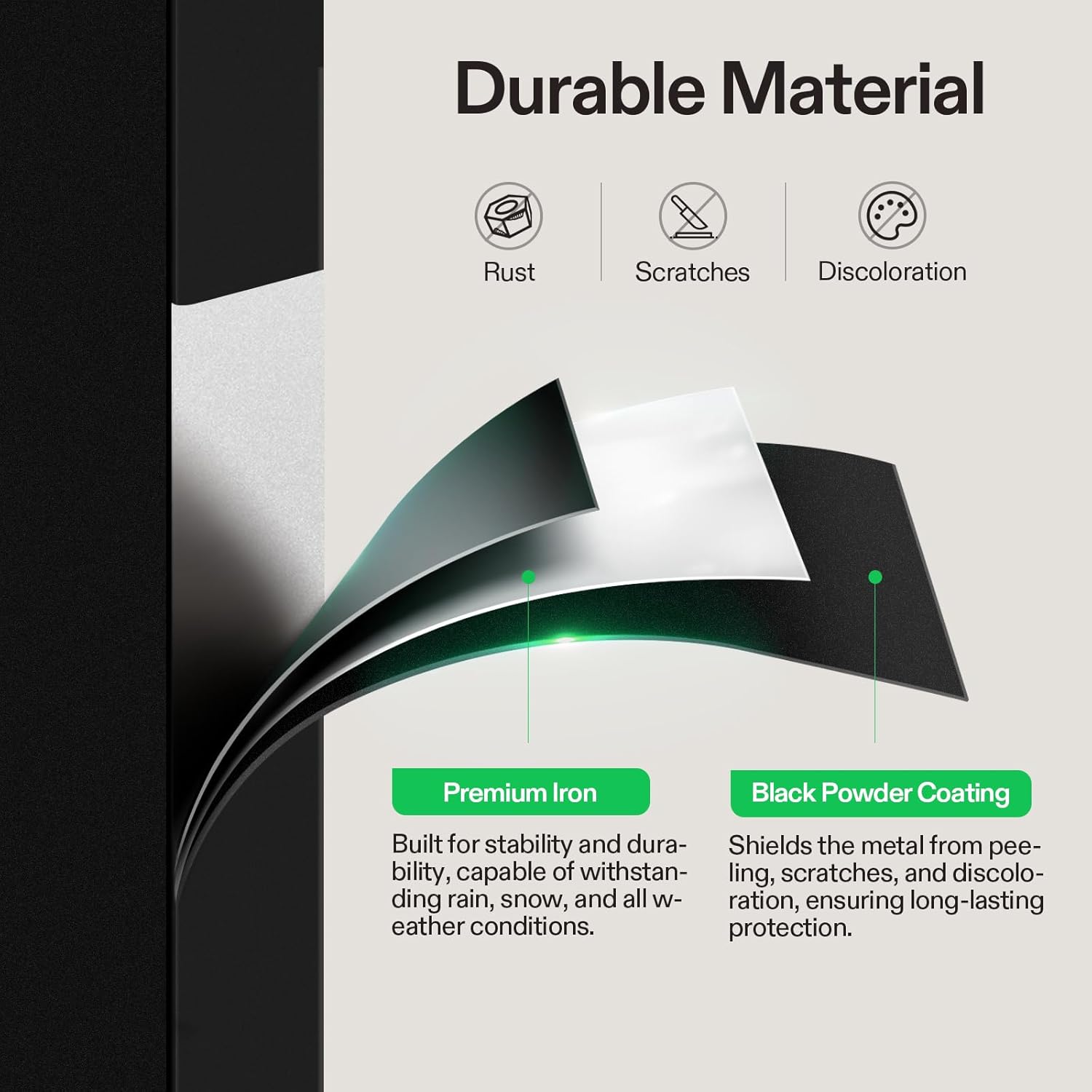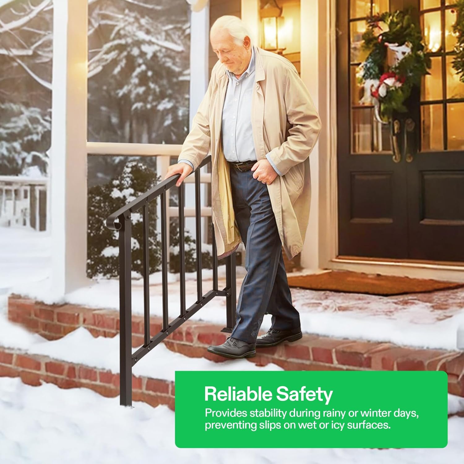- Sturdy & Durable: Made of high-quality iron for stability and durability, this handrail withstands harsh outdoor conditions, including rain and snow; Thick black powder coating reduces chance of peeling off, rust, scratches, and discoloration, making the railing easy to maintain and clean