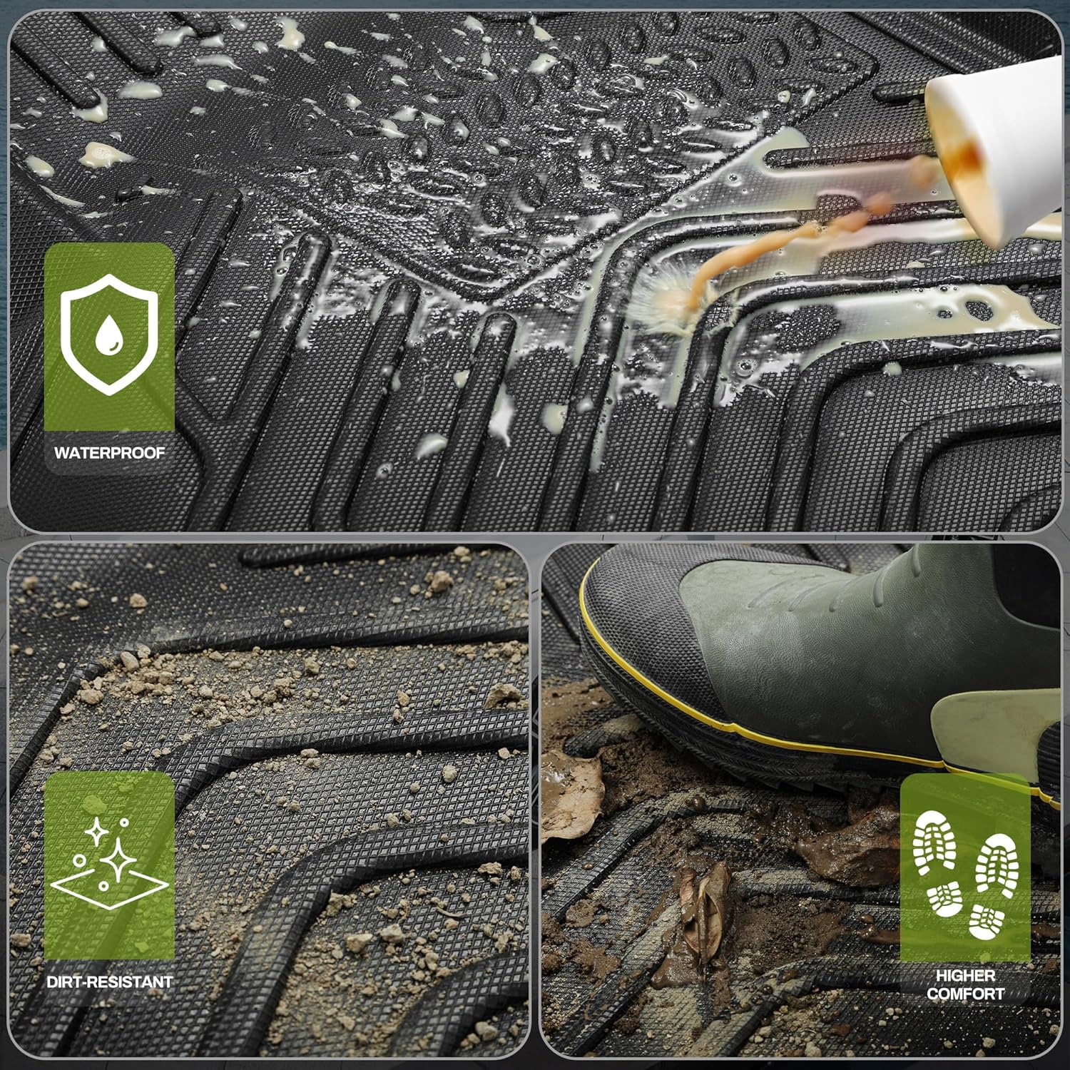 - Tailored Fit: Floor mats cargo liners every detail is specially crafted using innovative vehicle scanning technology to ensure a custom fit; Features raised edges that accurately hug the contour of your vehicle to protect the carpet floor from bad weather, spills, and messes