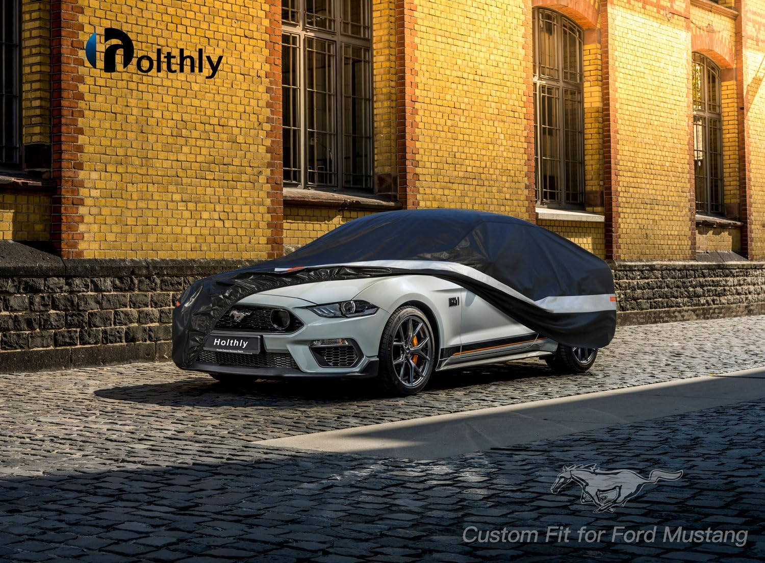 - ăPerfect Fităâ Holthly has conducted experiments to obtain a customized car cover specifically designed for Ford Mustang, Shelby, GT350, GT500 (1964-2024). The custom-like fit of the full cover not only enhances the -aesthetics of your vehicle but also provides superior wind resistance, thereby prolonging the lifespan of the hood. It offers enhanced and long-lasting protection for your car.
