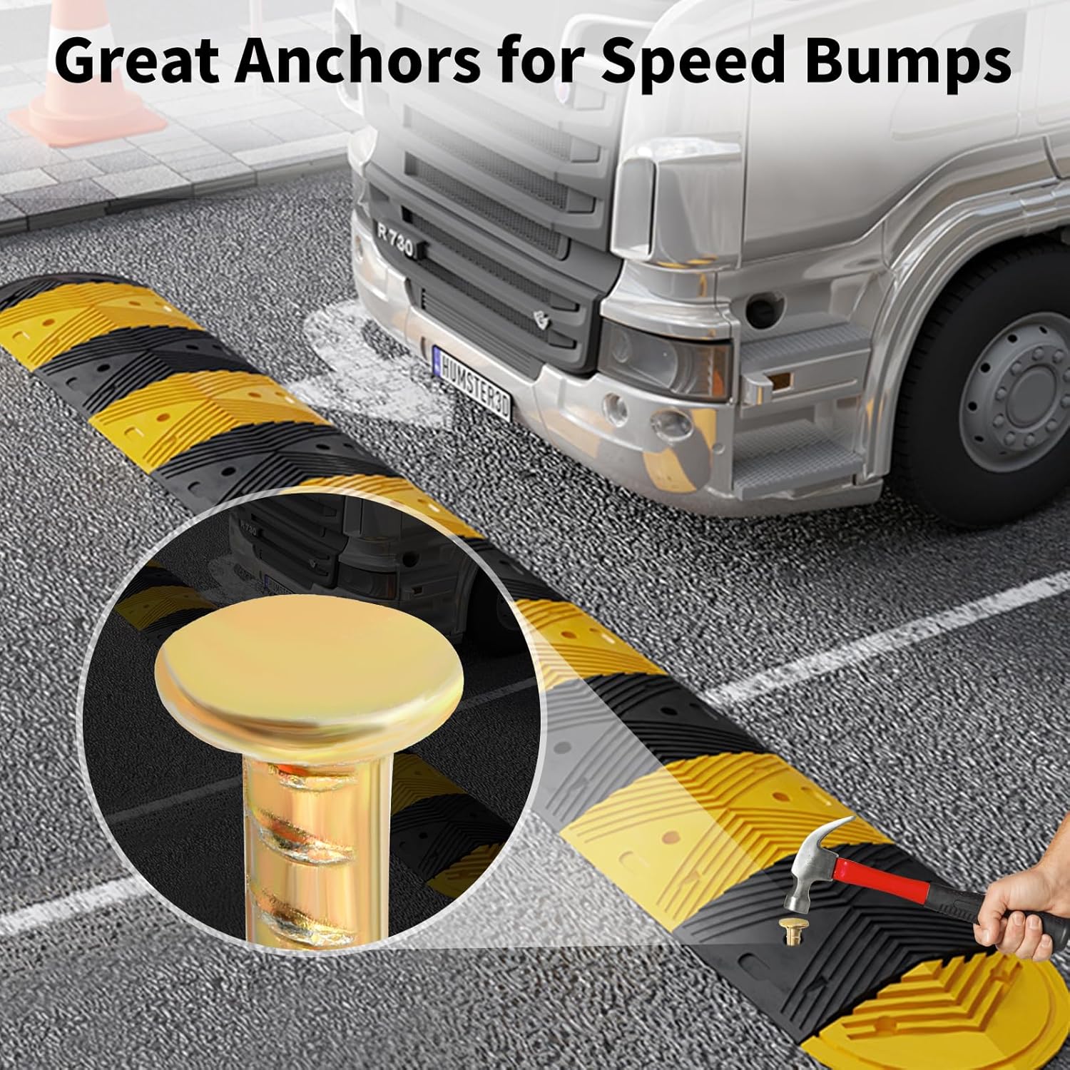 - 【16 INCHES REBAR SPIKES】Sold in bundles of 10 Pcs 1/2" (12mm) diameter and 16" long rebar spike, 1" diameter flat top, suitable mounting hardware for permanent installation in asphalt. Such as anchor speed bumps, parking curbs, wheel stops, cord covers, handicap threshold ramps etc.