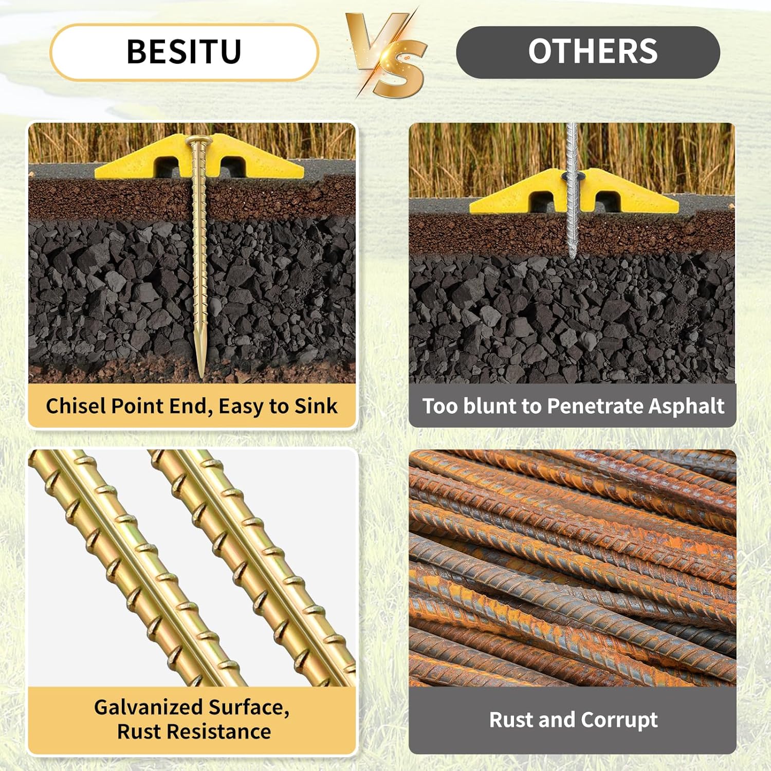 - 【 TWO YEAR WARRANTY】10-pack road spikes. Order Besitu ground stakes today, you would love it! If not, please feel free to contact us, we would provide the best solution within 12 hours.