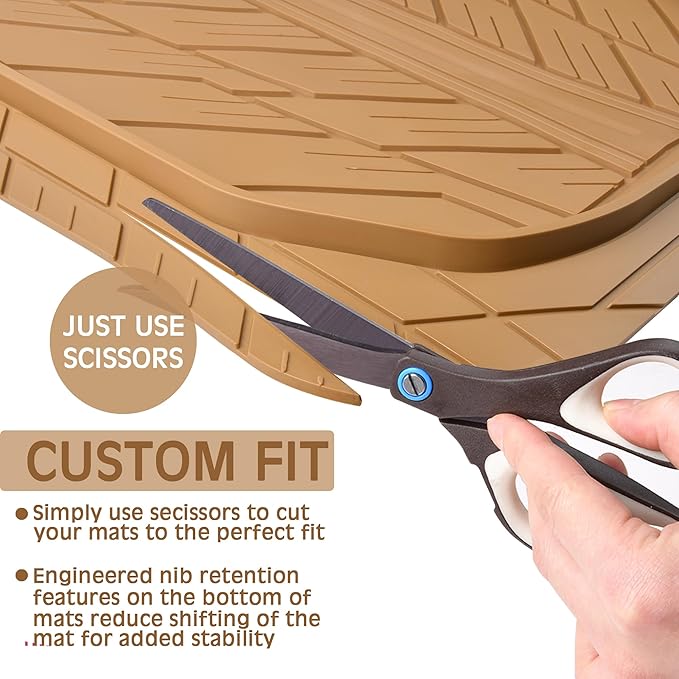 - 【Custom Fit Design】: Created for fast and easy installation in most cars, trucks and SUVs, these universal Flexible Liners floor mats can be trimmed with a pair of scissors to provide the perfect custom fit for your vehicle