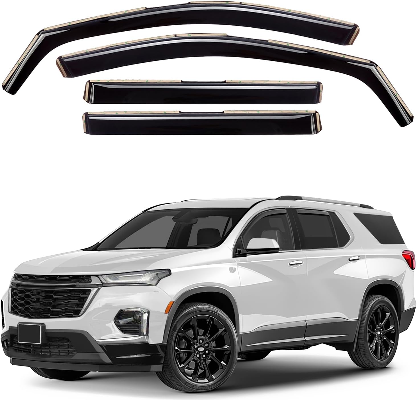 GrandWheel Co Smoke Tinted in-Channel Side Window Vent Visor Deflectors Rain Guards Compatible with Traverse 2018-2023 - 4pcs. GW0556