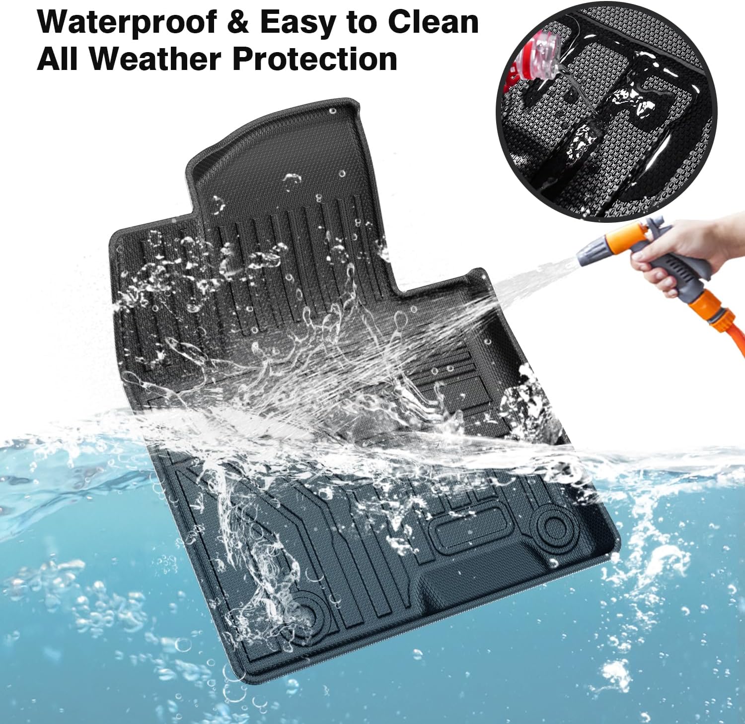 - All Weather Floor Mat&Bed Liner: These floor liners&truck bed mat offer protection against outside variables (such as mud, liquid and snow) and will prolong the life of the car interior in all weather (rain, fog, snow, etc). The floors mats&cargo bed liner are easy to clean by wiping, rinsing, or simply using soap and water.