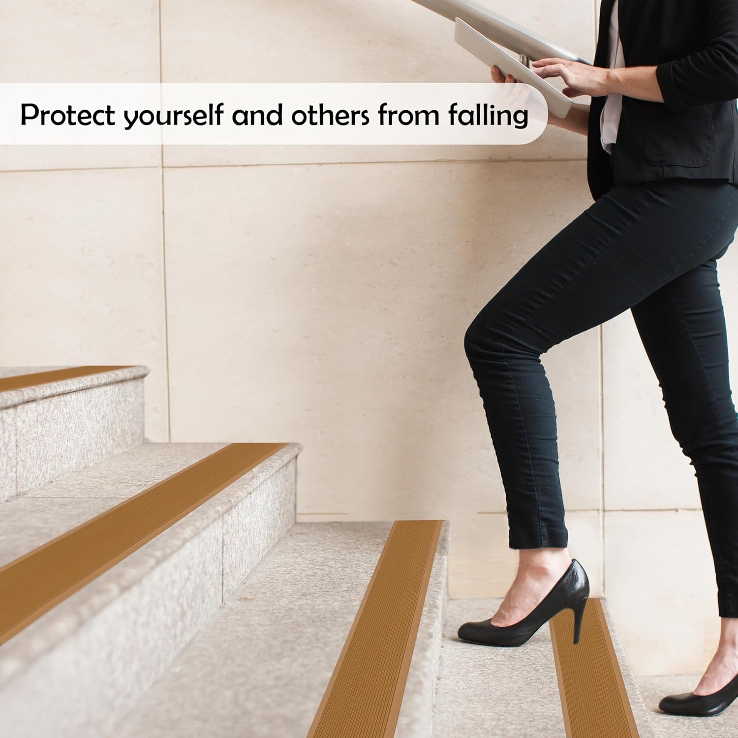 - STRONG SELF-ADHESIVE WORKS ON ANY SMOOTH SURFACE β Its strong self-adhesive allows it to adhere to any flat surface without difficulty. You can stick this stair treads non slip tape on wood, tile, metal, plastic, laminate, vinyl, or glass.