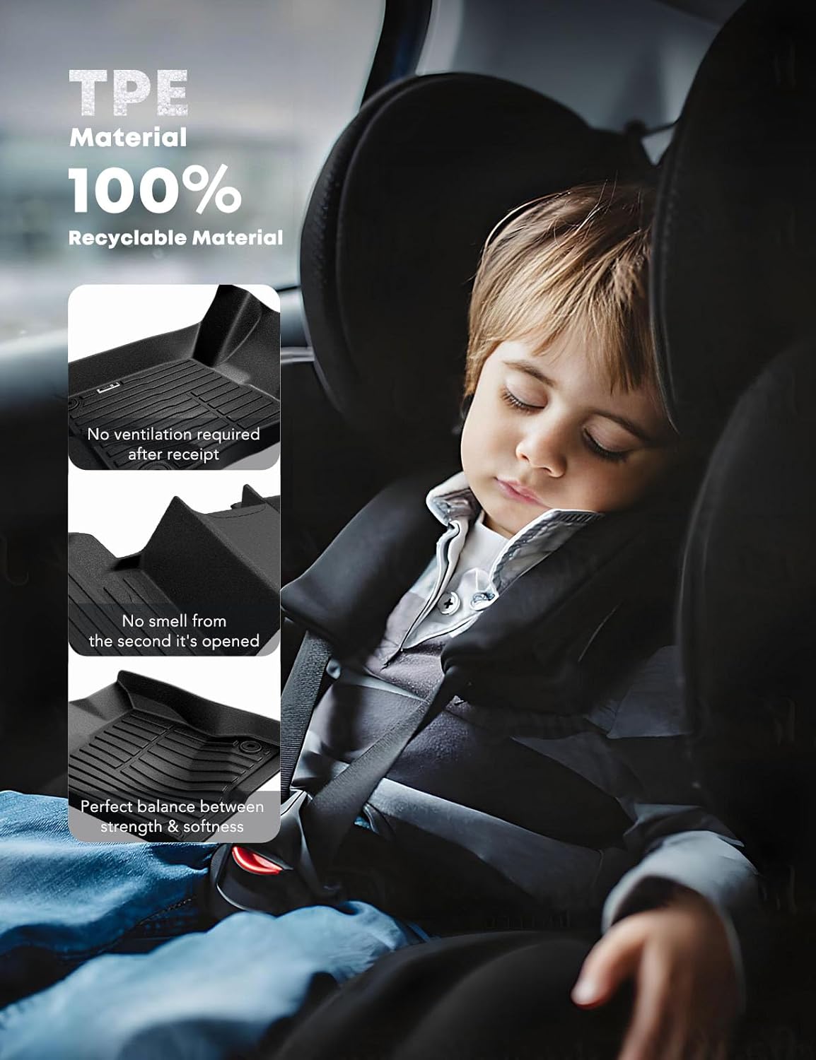 - Odorless & Comfort TPE mats: No ventilation needed after receipt; No smell from the second it's opend; The soft feeling of your feet makes you feel relaxed when you step on these full coverage floor mats; And it can ensure wear resistance and scratch resistance