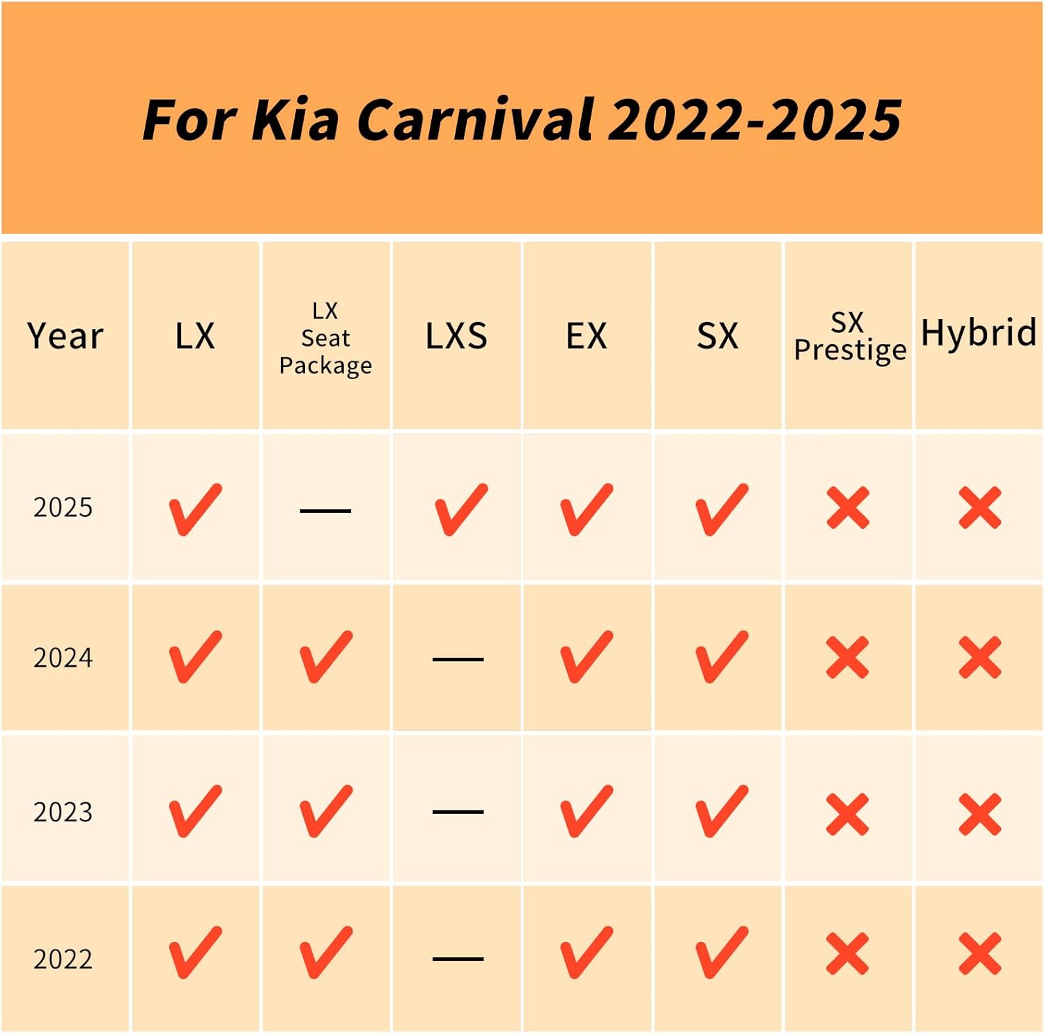 - Fit Your Vehicle Exactly: These custom floor liners fit for 2024 Kia Carnival. Binmotor car floor mats are accurately scanned by professional 3D laser scanner to make the car floor mats and the original car data accurately match. What's more, details such as throttle and brake were noted during the design process, which will not affect you when you drive.