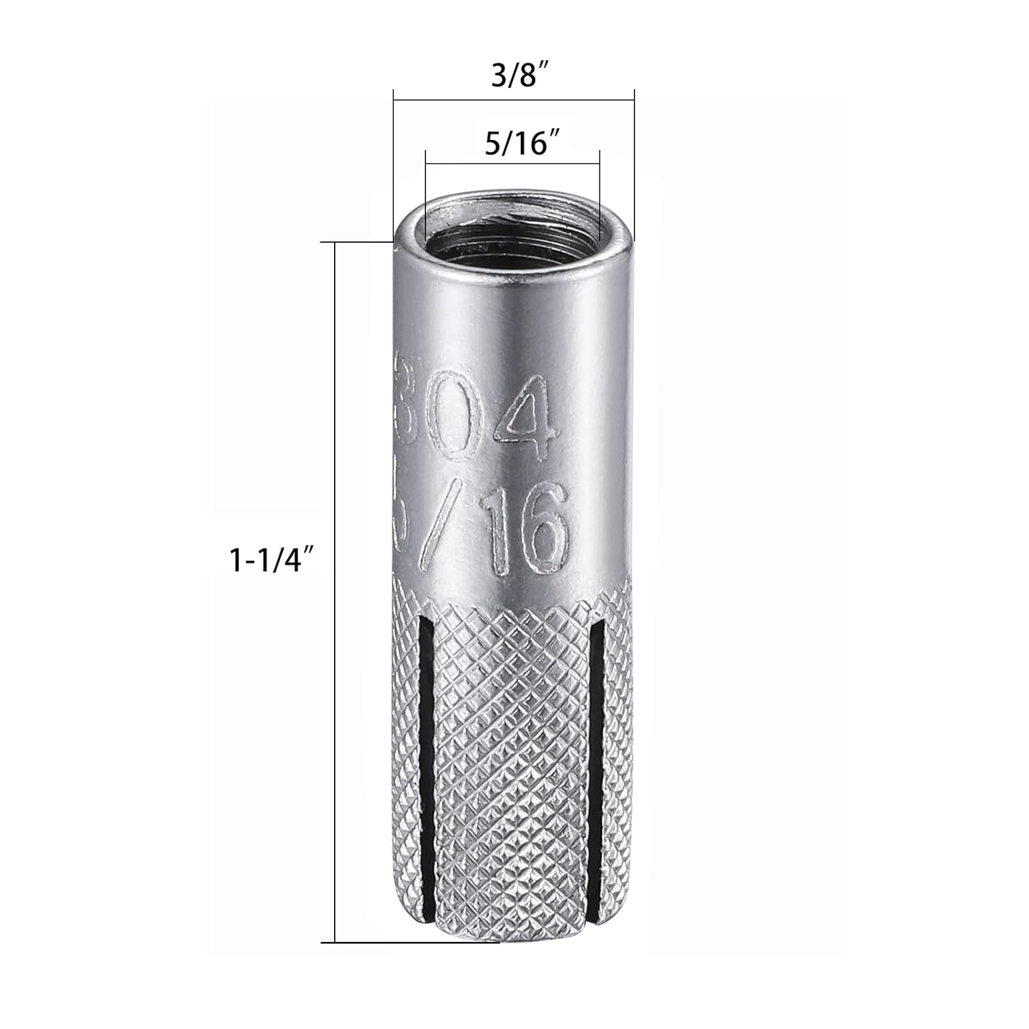 - [Function] 5/16" Inch premium stainless steel material knurled drop in anchors: 1-1/4" hole depth and 3/8" hole diameter, use with 5/16-18 bolt.