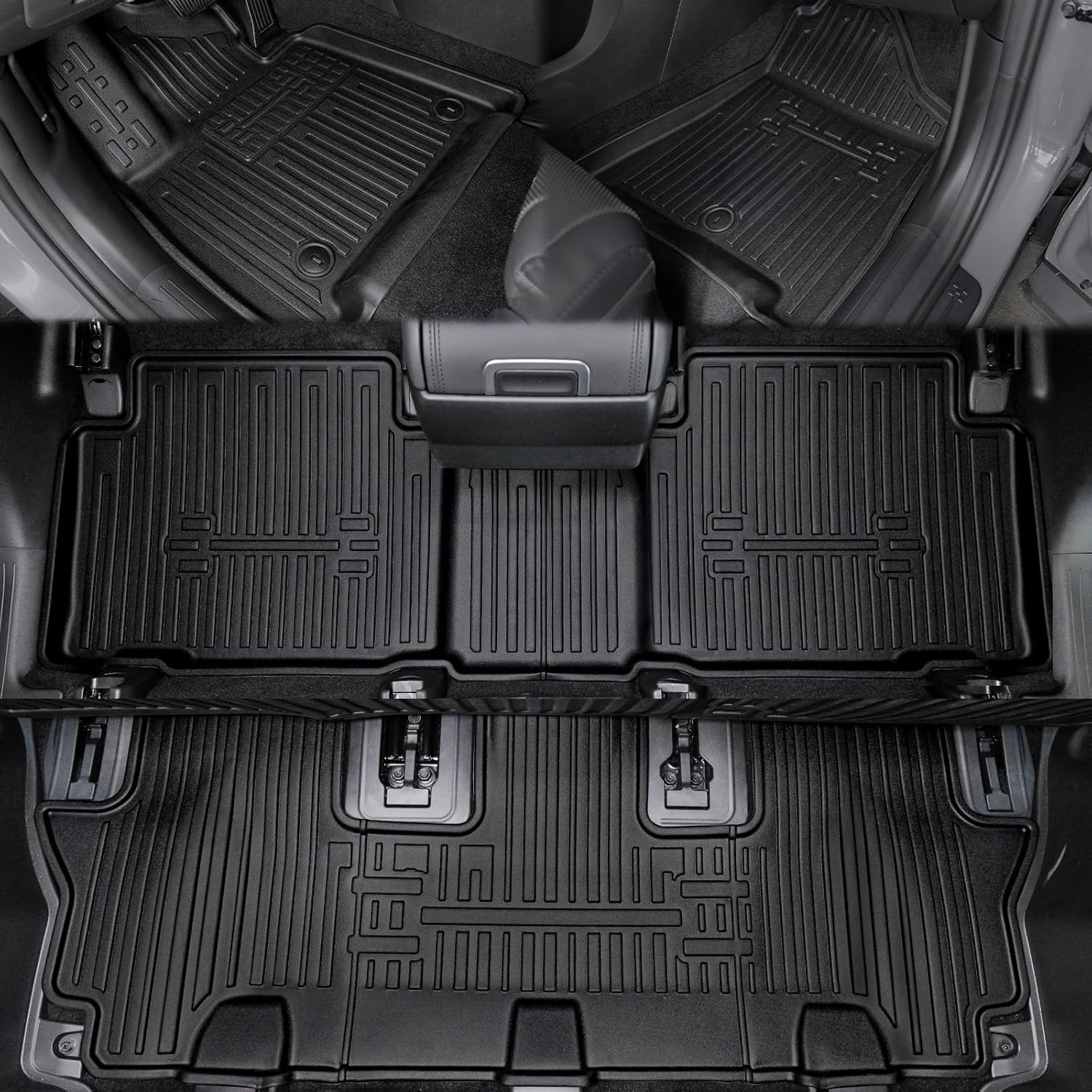 - Durable Materials: The floor mats and cargo mats are made of TPE material, which is scratch-resistant, durable and odorless. These flexible car mats full set feature water-resistant and can withstand heavy daily use. While getting dirty, just rinse with water hose in seconds and air dry