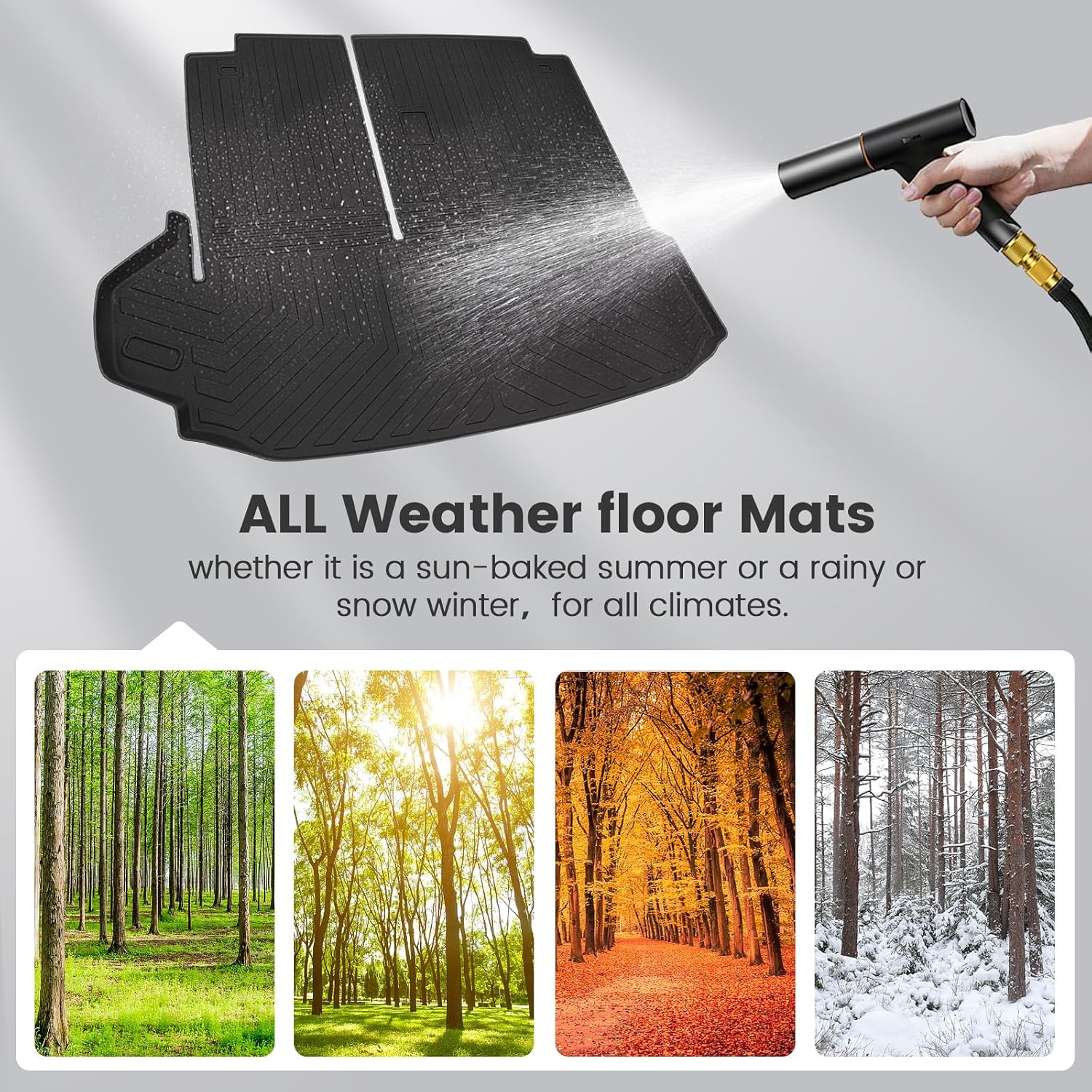• TPE Material: Zhe floor liners are carefully selected and made of eco-friendly TPE material, which are not only soft and durable, but also non-toxic and odorless. Even in extreme weather conditions, the floor mats retain excellent elasticity and softness, ensuring a comfortable travel environment for your family