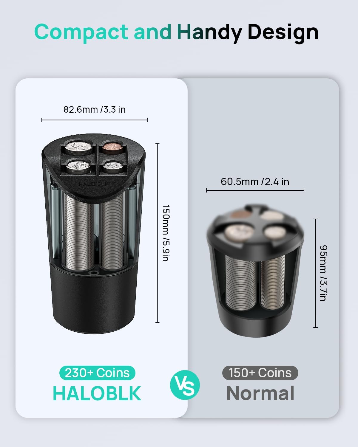 - Larger Capacity: Holds over 250 coins, including 58 quarters, 68 dimes, 50 nickels, and 78 pennies.