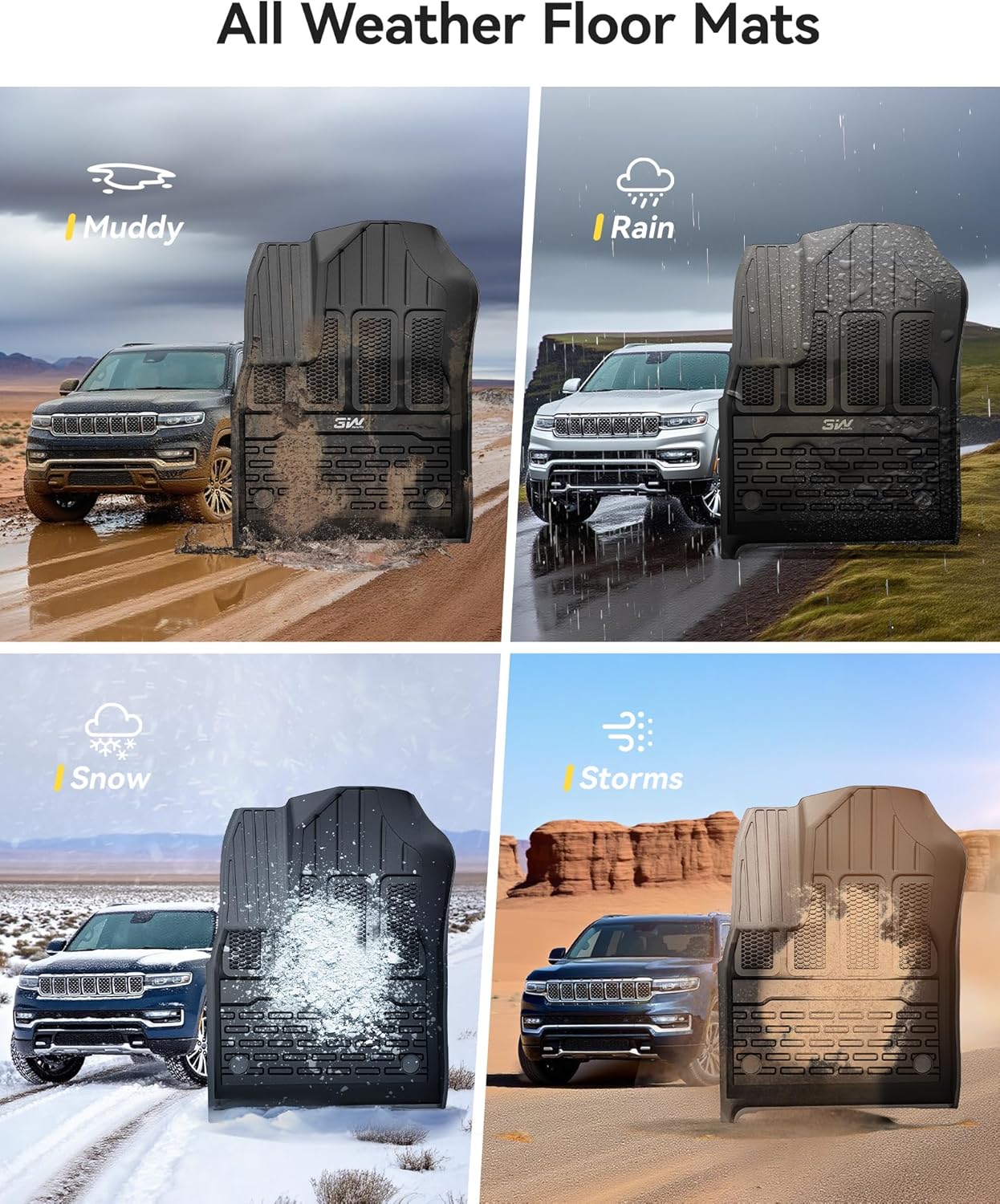 - GREEN AND RECYCLABLE GRAND WAGONEER LINERS: The floor mats for Jeep Grand Wagoneer 2022-2025 8 passenger are made with TPE rubber material. This recyclable and flexible materials make no smell even in extremely high temperature and won't crack, curl or harden in sub-zero weather. Bring you and your families a safer and more comfortable interior car environment