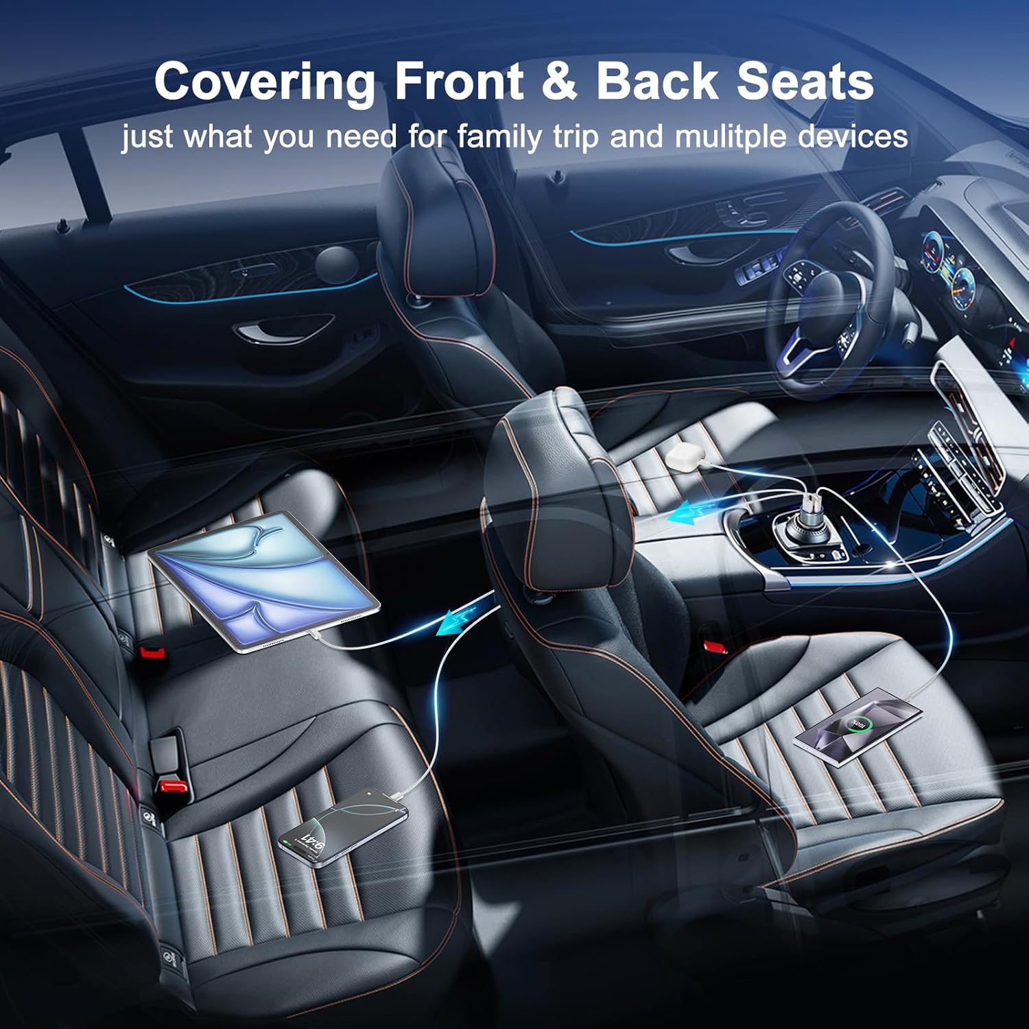 - Broad Compatibility: This 4-port car charger can charge most USB A and USB C devices. It’s compatible with iPhone 16 Pro Max/16Pro/16Plus/16/15 Pro Max/15Pro/15/15 Plus/14 Pro Max/13/12/SE/11/XR/XS Max/X/8 Plus/7; iPad Pro 12.6/11/10.5/Mini6/Air5/4; Galaxy S24 Ultra/S23/S22/ S21/S10/S9/A54/A53/A14/A13/A23/A15/Note, Pixel 7/6/5/4XL, dash cam and other car accessories.