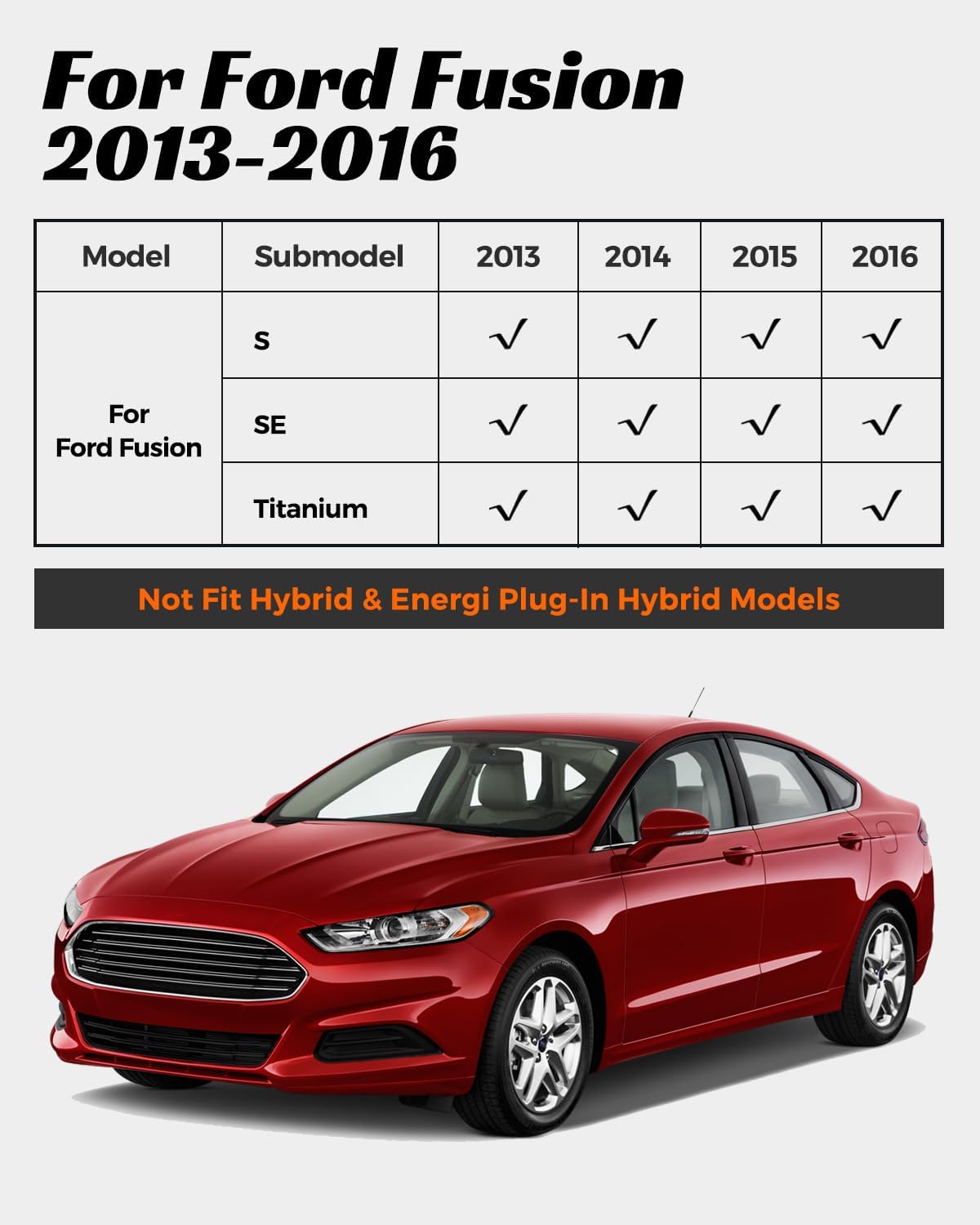 - Material Thermoplastic Elastomer (TPE) : Vehicle Service Type for Ford Fusion 2013-2016