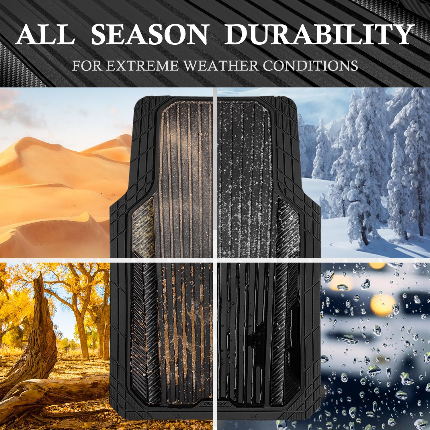 CAR PASS Heavy Duty Rubber Car Mats Metallic,Aluminum Film All Weather Floor Mats Waterproof Universal Trim to Fit SUVs Sedans Vans 4 Piece Anodized Deep Dish Two-Tone Sporty Carbon Fiber Black Chrome