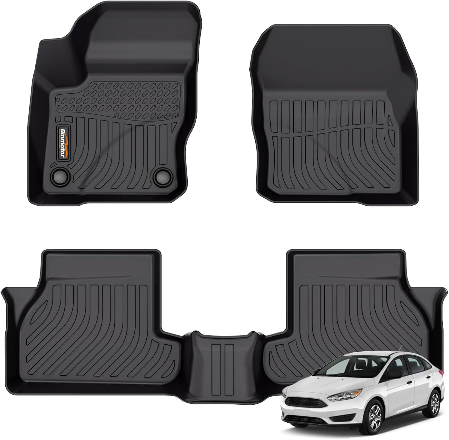 Binmotor-Floor Mats for Ford Focus 2012-2018, S | SE | ST | SEL | Titanium, 1st & 2nd Row, TPE All Weather Car Mats Rubber Liners for Ford Focus Accessories