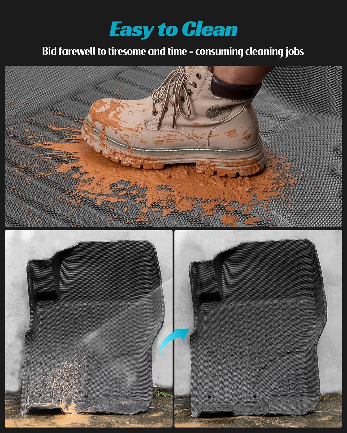 - All Weather Floor Mats: Our truck floor mats floor protector car accessory feature high edges, avoiding messes from leaking onto your car floor. Cleaning is simple, just take the car protector all weather mats out and easily rinse with a hose. Gone are the days of getting on your knees to wipe and rub dirt, liquid spills, salt, and mud from your carpet mat with a pile of dirty rags. Enjoy a clean interior with custom car mats for Nissan Frontier 2008-2021 Crew Cab