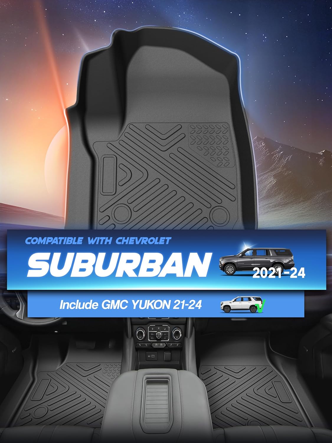- ăCustom Fit for Chevrolet SuburbanăSSESS Floor Mats for 2021-2024 Chevrolet Suburban/ GMC Yukon XL,custom fit front & 2nd row liner set.100% perfectly compatible with the original car.The car floor mats are tailor-made according to the original car floor,adopt advanced 3D laser scanning technology,with precise measurements to ensure the mats fit your car accurately,no need trimming and provide protection
