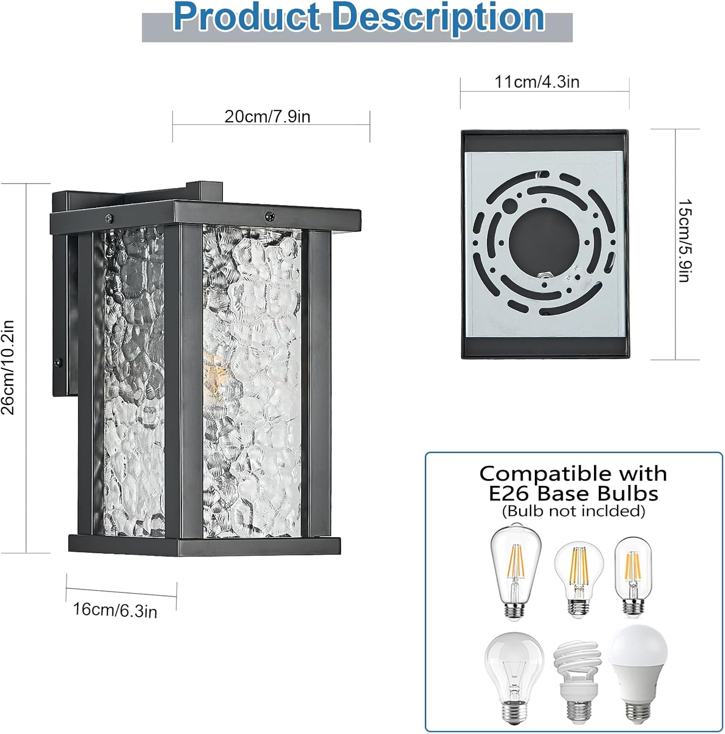 - ELEGANT STYLE: Outdoor wall lanterns design featuring black metal frame and textured glass panels creates beautiful light patterns and adds sophistication to any space
