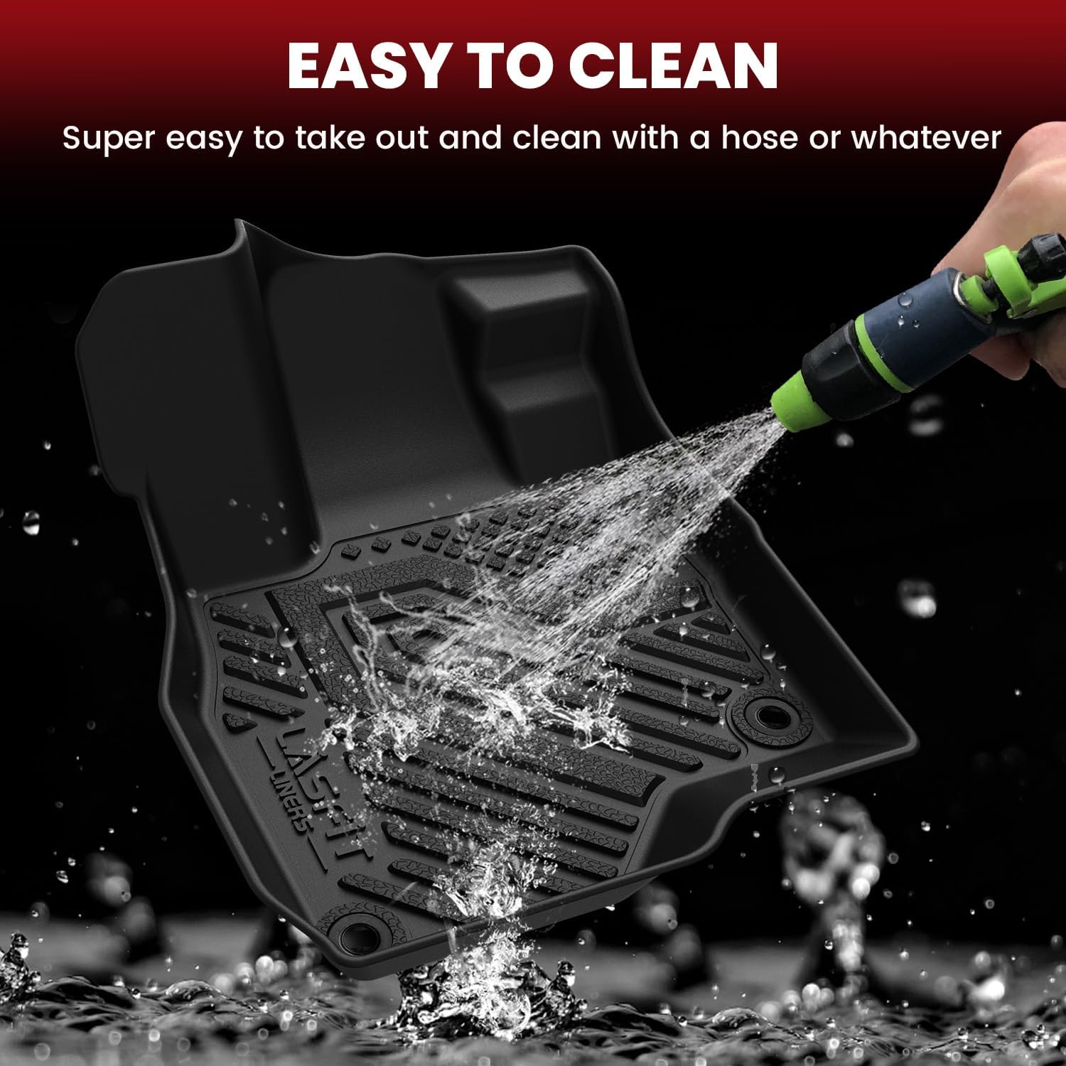- DURABLE AND EASY TO CLEAN-Our floor mats are built to last—wear-resistant, scratch-resistant, and designed to avoid curling or deformation. They maintain their flexibility and elasticity, even in extreme weather. Cleaning is a breeze: simply remove the mats, spray them with a hose, rinse, dry, and place them back. Keeping your floor mats looking brand new has never been easier