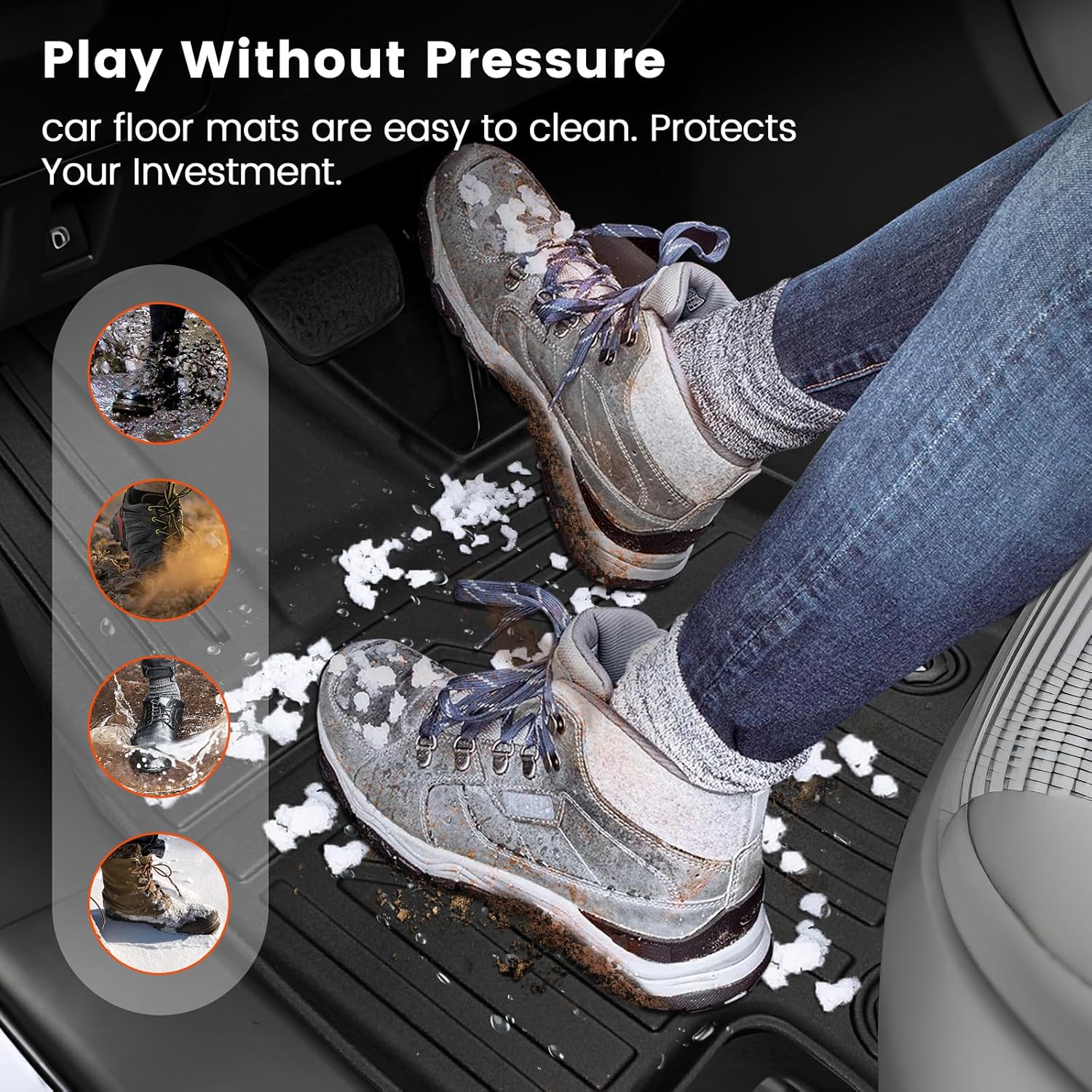 • "【All-Weather Protection】 100% Waterproof TPE material prevents spills, mud, and snow from damaging your car's interior. Keep your car clean.Deep grooves trap dirt/liquid better than generic mats.Perfect for everyday drives, pet transport, family trips, and off-road excursions."