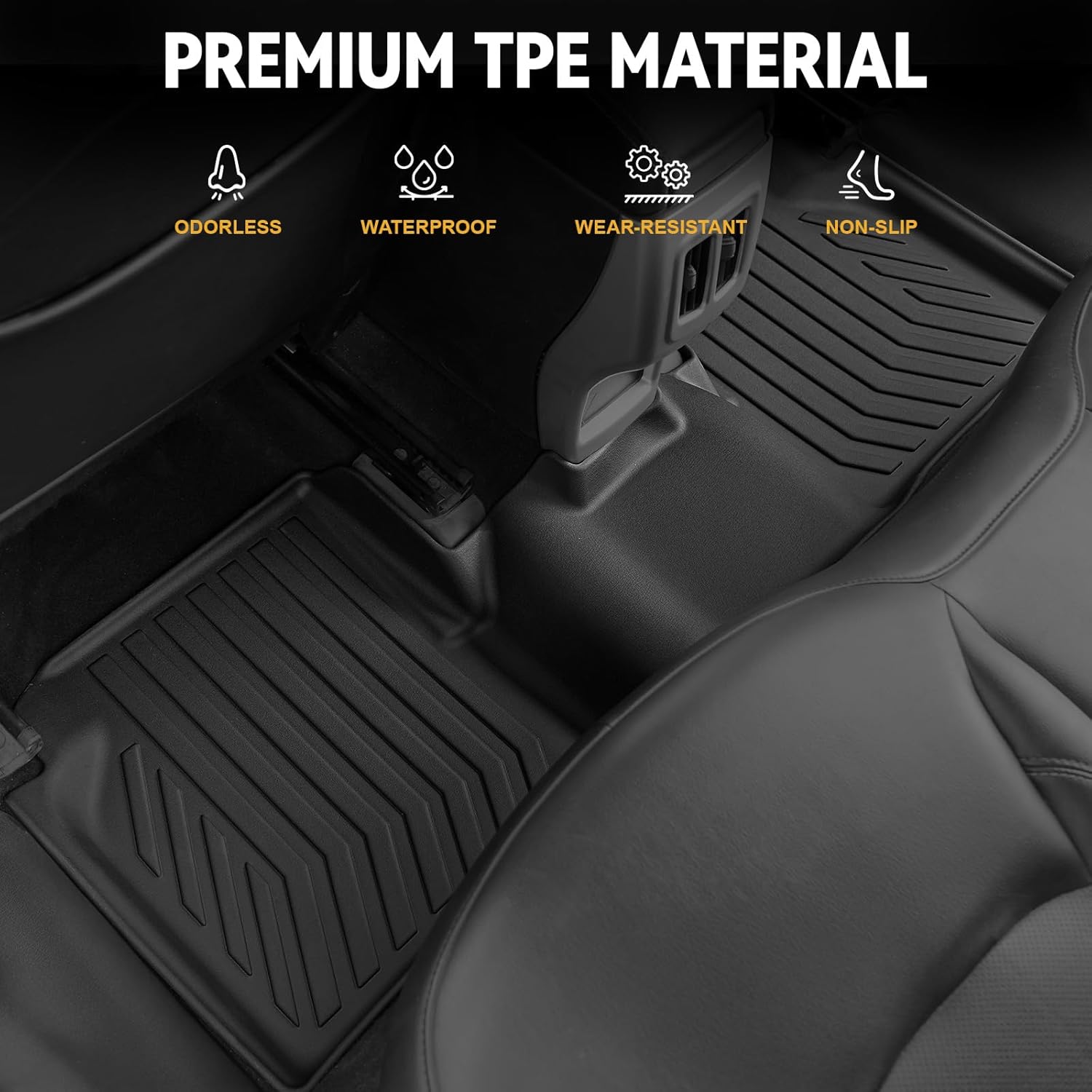 - All-weather TPE Material: 100% odorless, BPA-free: family-safe by design. Flexible TPE full-coverage car mats cargo mat deliver water resistance, marine-grade durability, and daily wear protection—all in one set