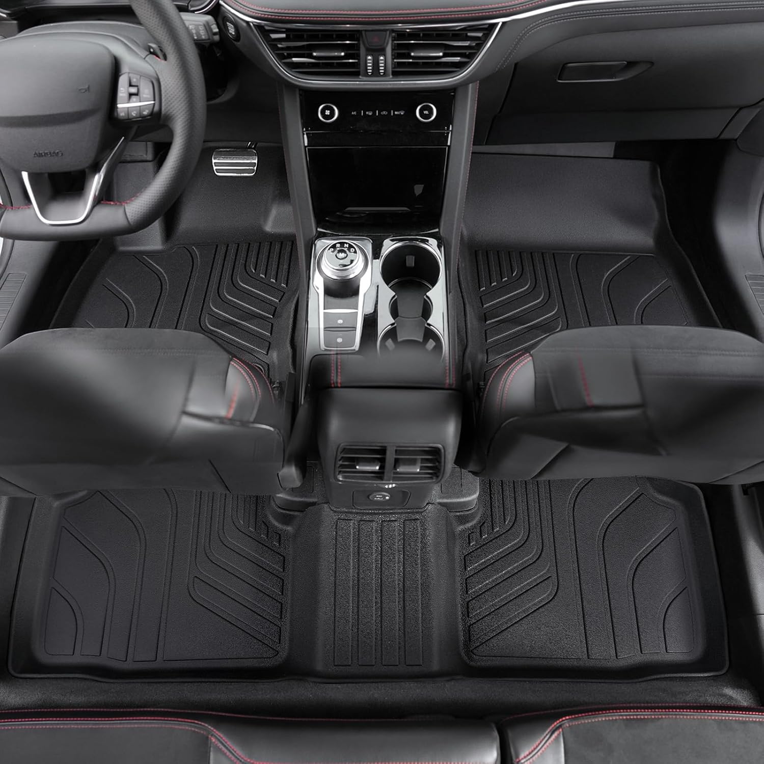 - All-weather TPE Material: 100% odorless and BPA Free, providing complete safety for your family while minimizing environmental impact. These flexible car mats full set feature water-resistant performance backed by marine-grade durability that withstands heavy daily use